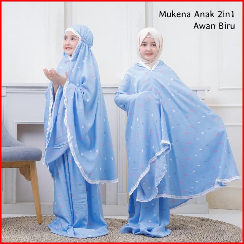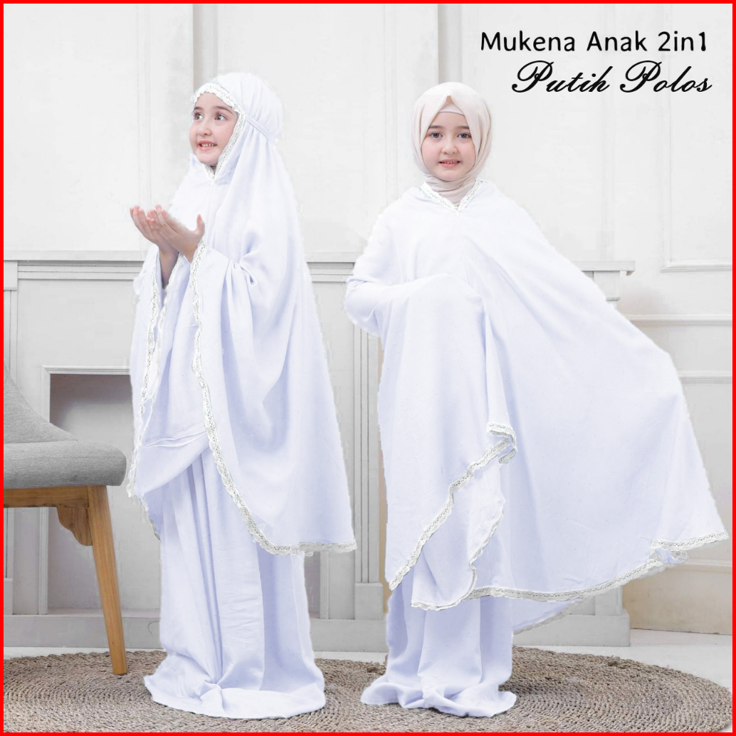 Mukena Karakter Anak Putih 2in1 Bahan Rayon Adem Usia 8 9 10 11 12 Tahun Motif Awan Cantik Lucu