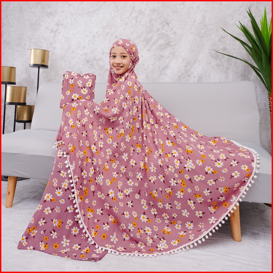 Mukena Anak Renda 7-12 Th Premium Chayra Pompom Xxl