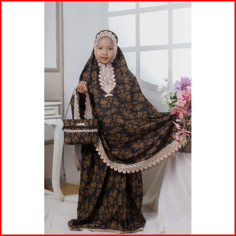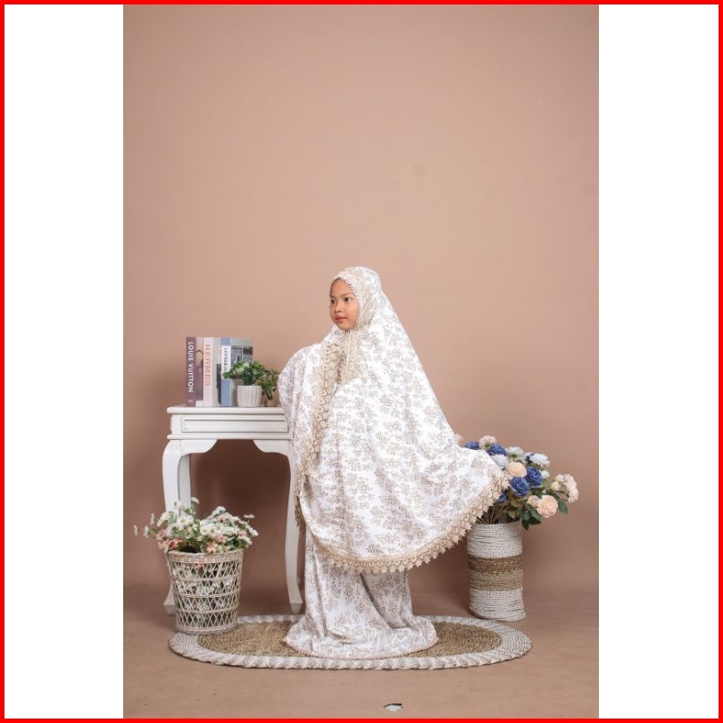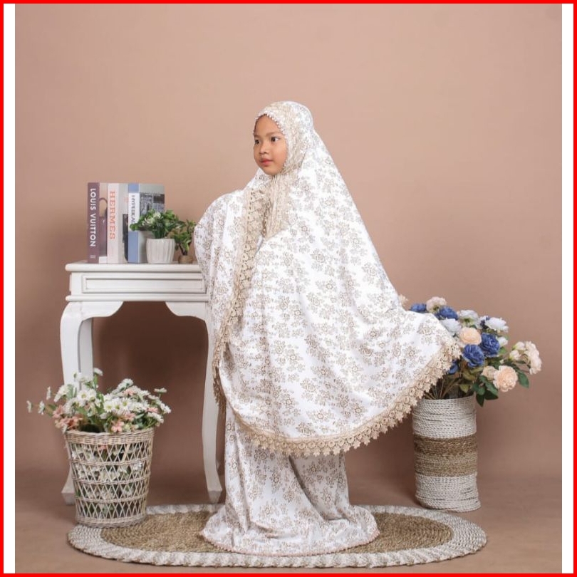 Mukena Anak 2in1 Katun Foil Motif Bunga Terbaru Untuk Usia 4-13 Thn.
