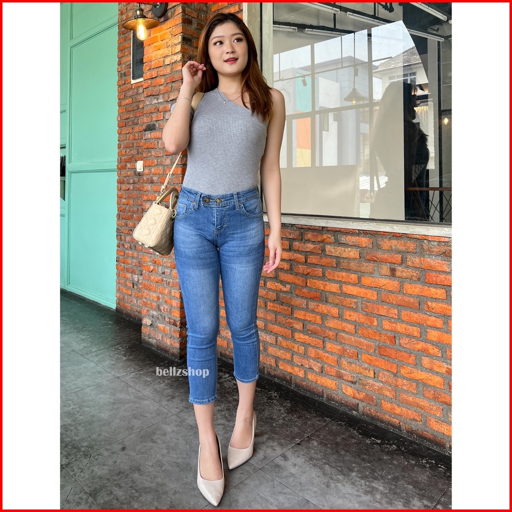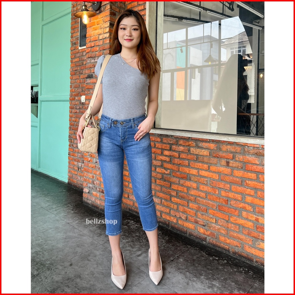 9732 Celana Jeans 7 9 Wanita Pensil Kancing 2 Kekinian Jumbo Premium Bellzshop Size 27 Sd 34