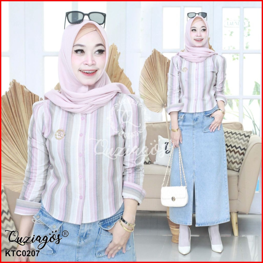 Ready Kemeja Croptop Katun Triset Pjg 51cm Ori Quziagos