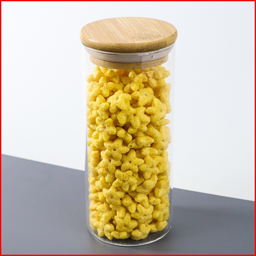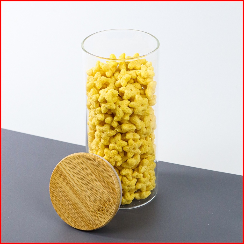 Toples Penyimpanan Makanan Kaca Bening Transparan Tutup Kayu Desain Estetik