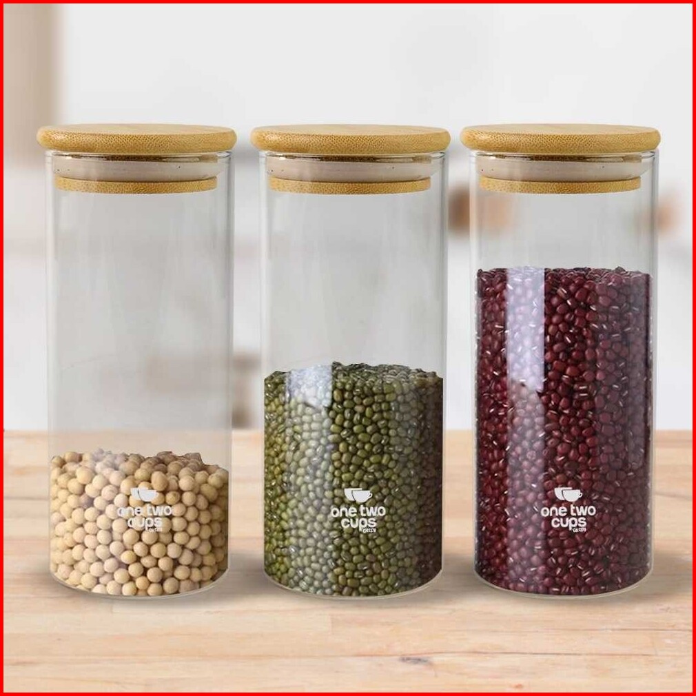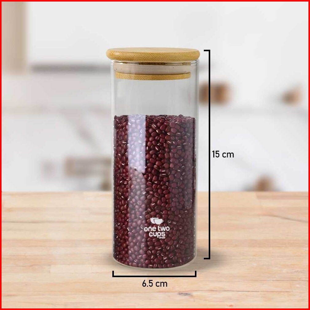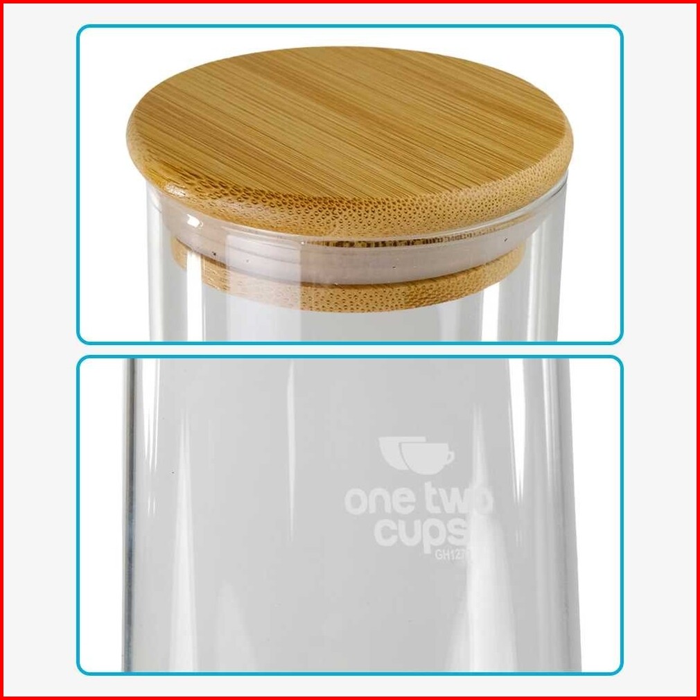 Toples Estetik Tempat Penyimpanan Makanan Bumbu Dapur Garam Lada Dll Toples Kaca Transparan Tutup Kayu Toples Kaca Tutup