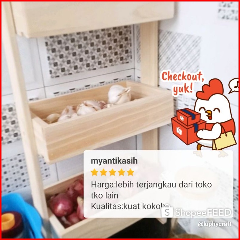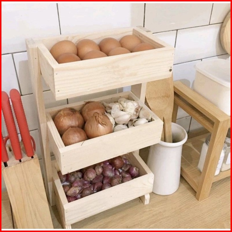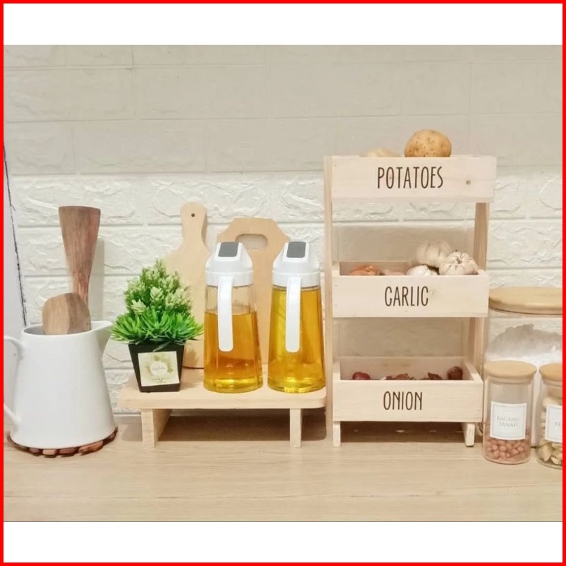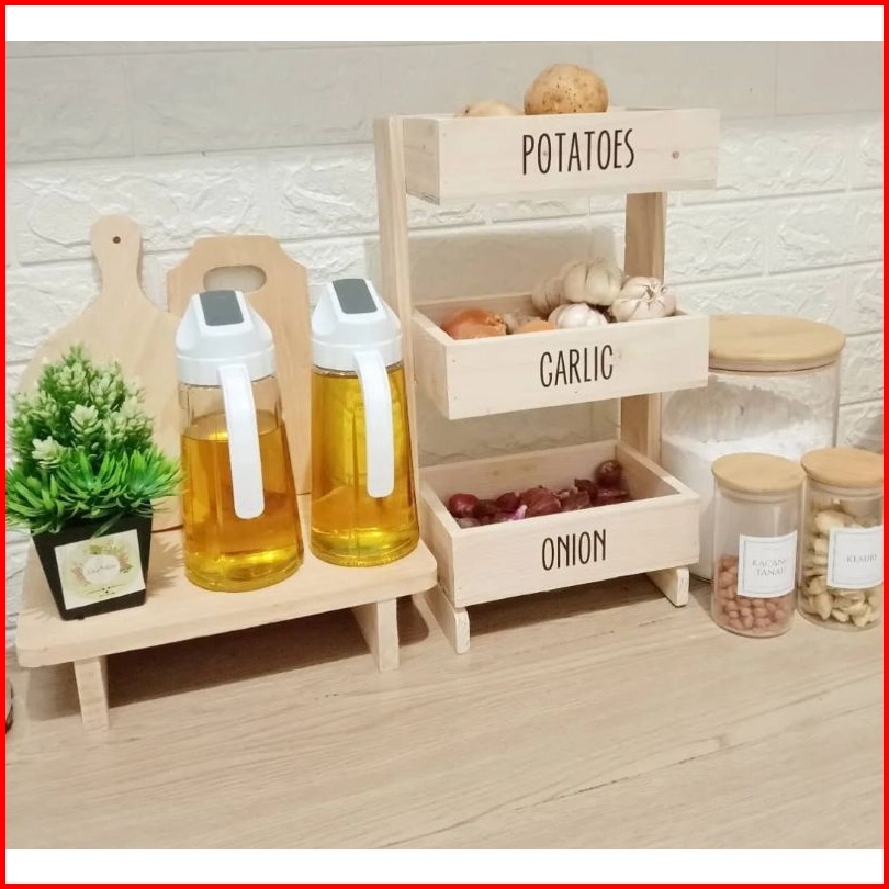 Rak Bawang Susun Kayu Kekinian Rak Bumbu Dapur Serbaguna Minimalis