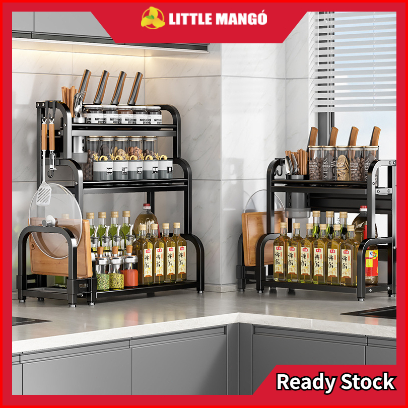 Rak Bumbu Dapur Stainless Steel 2-3 Susun Rak Dapur Serbaguna Rak Botol Bumbu Rak Penyimpanan F37