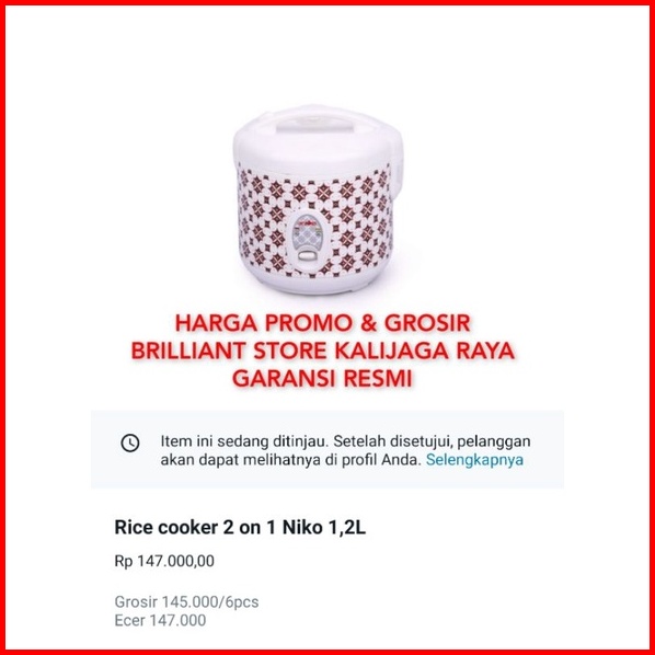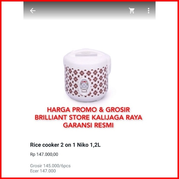 Penanak Nasi Niko Rice Cooker Niko Brilliant Store Kalijaga Raya