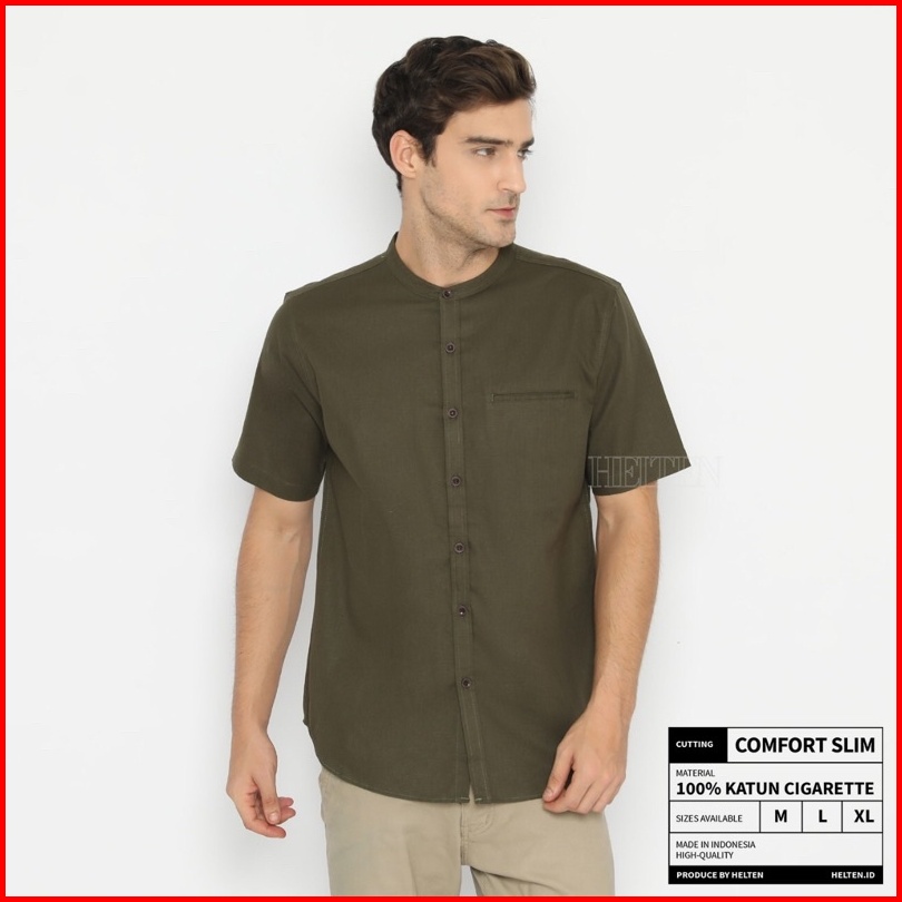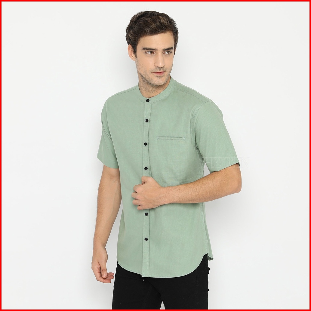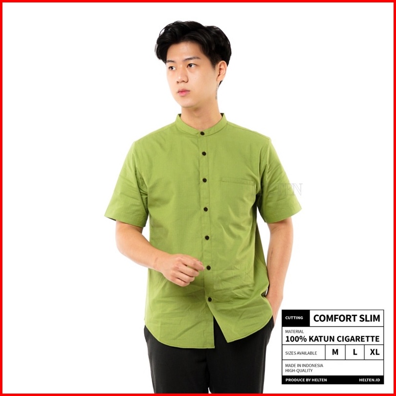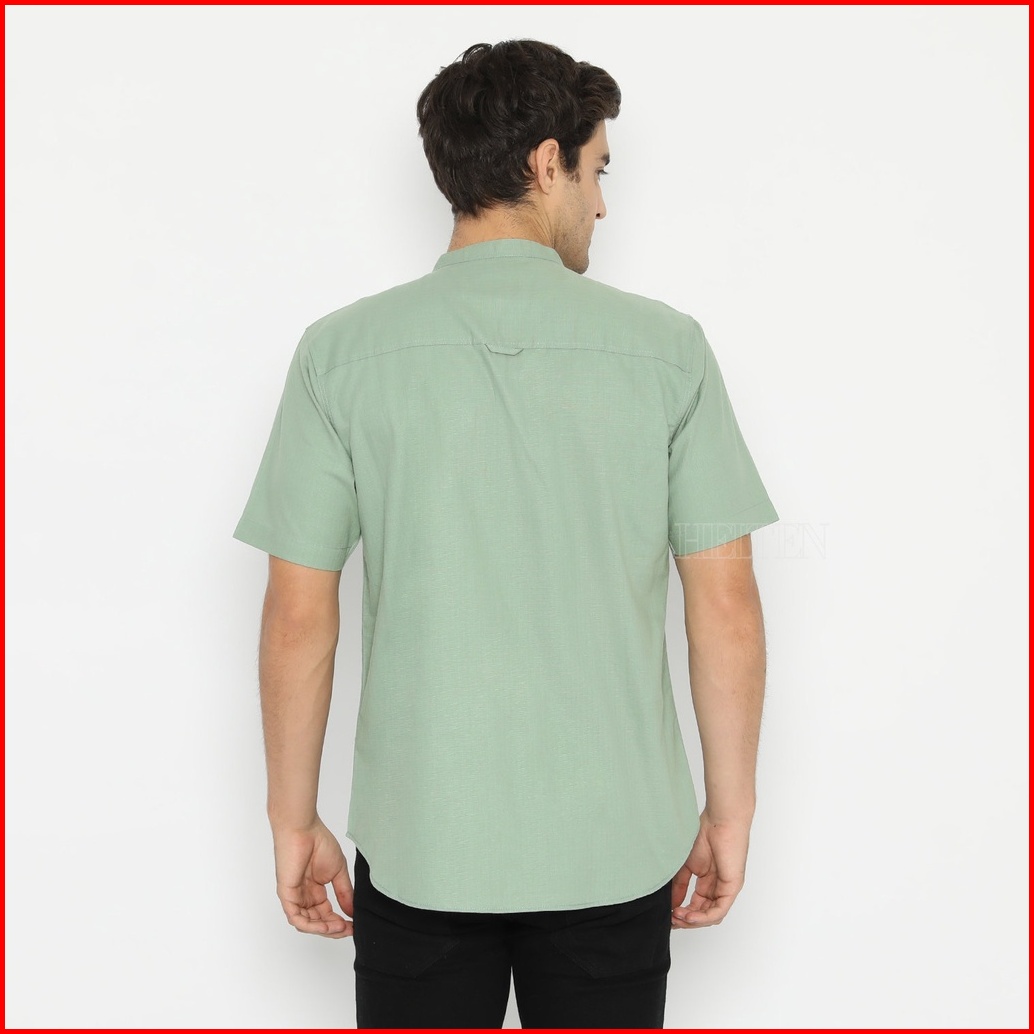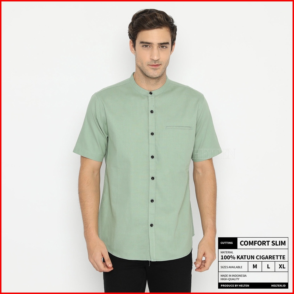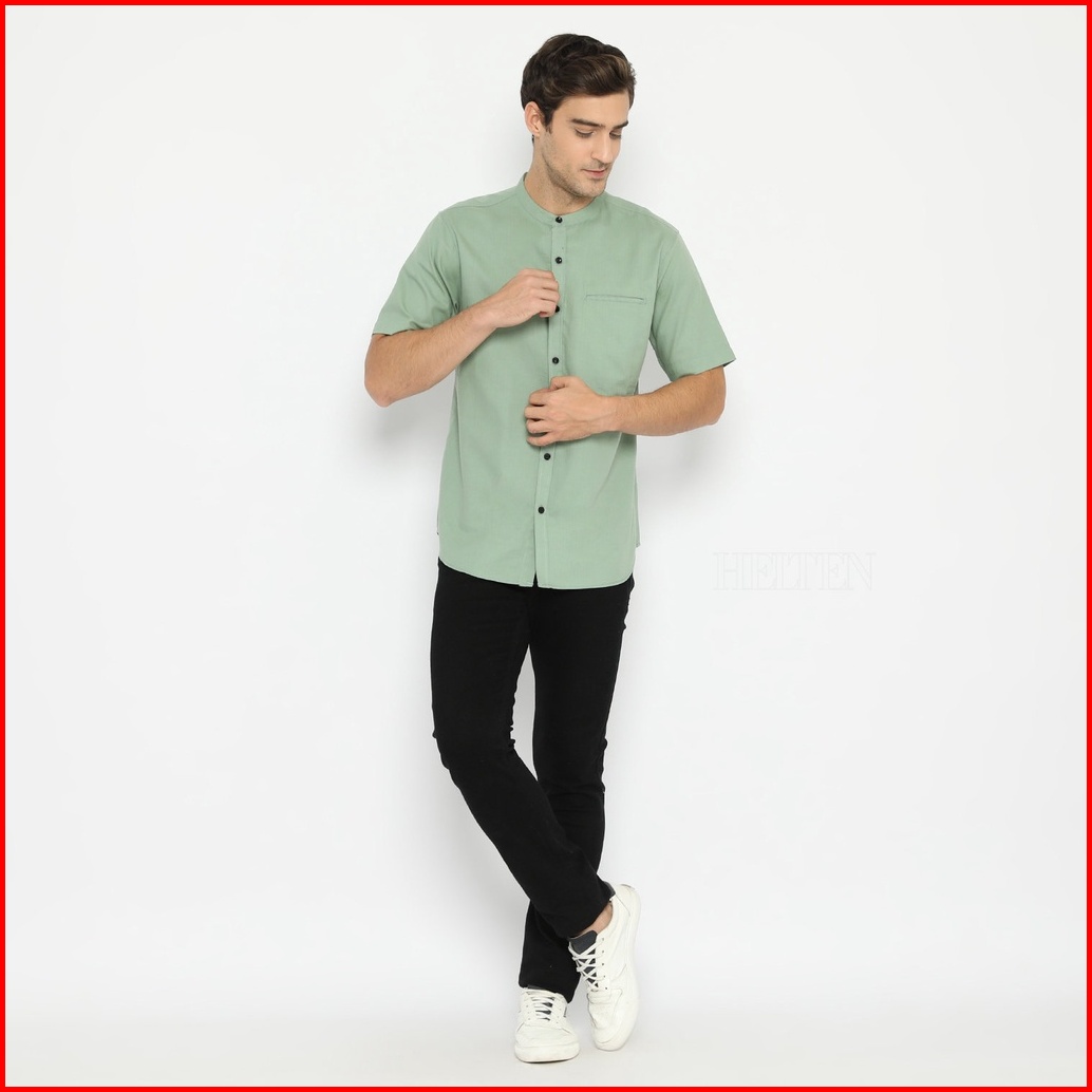 Helten Kemeja Koko Kerah Sanghai Lengan Pendek Warna Hijau Sage Saku Bobok Comfort Slim Banyak Warna