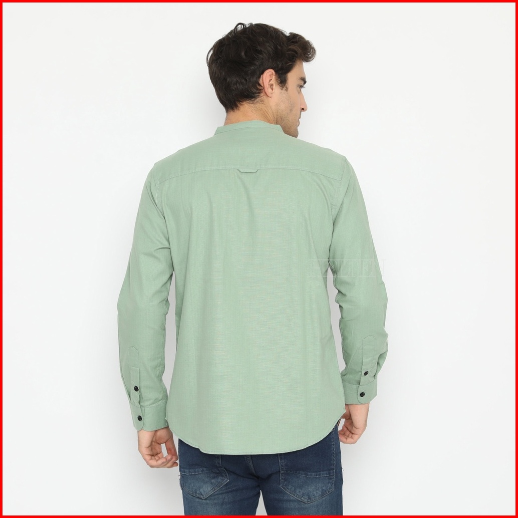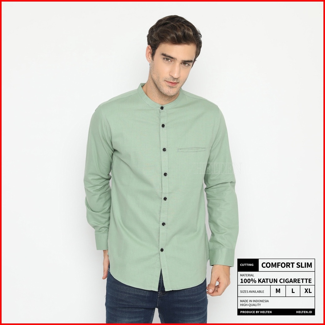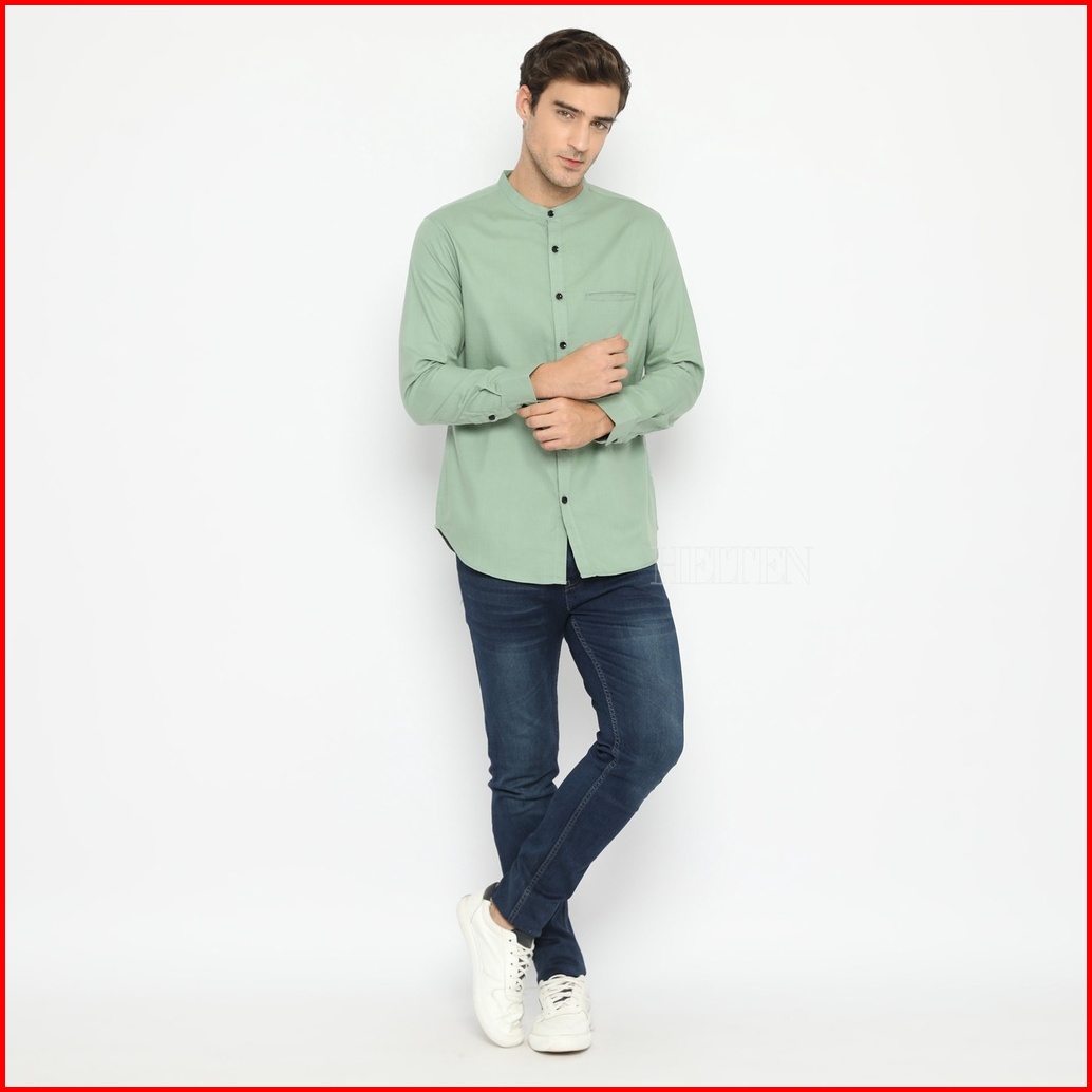 Helten Kemeja Koko Kerah Sanghai Lengan Panjang Warna Hijau Sage Saku Bobok Comfort Slim Banyak Warna
