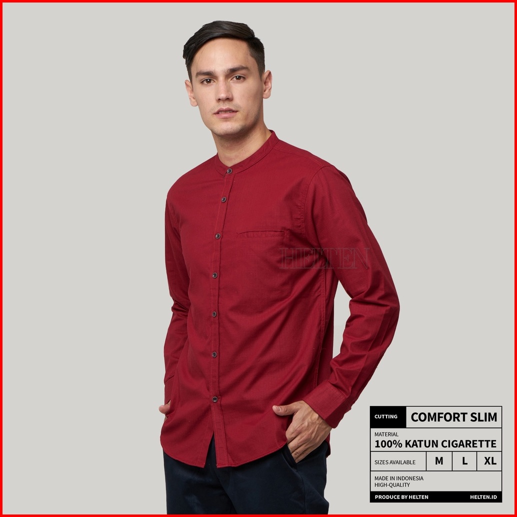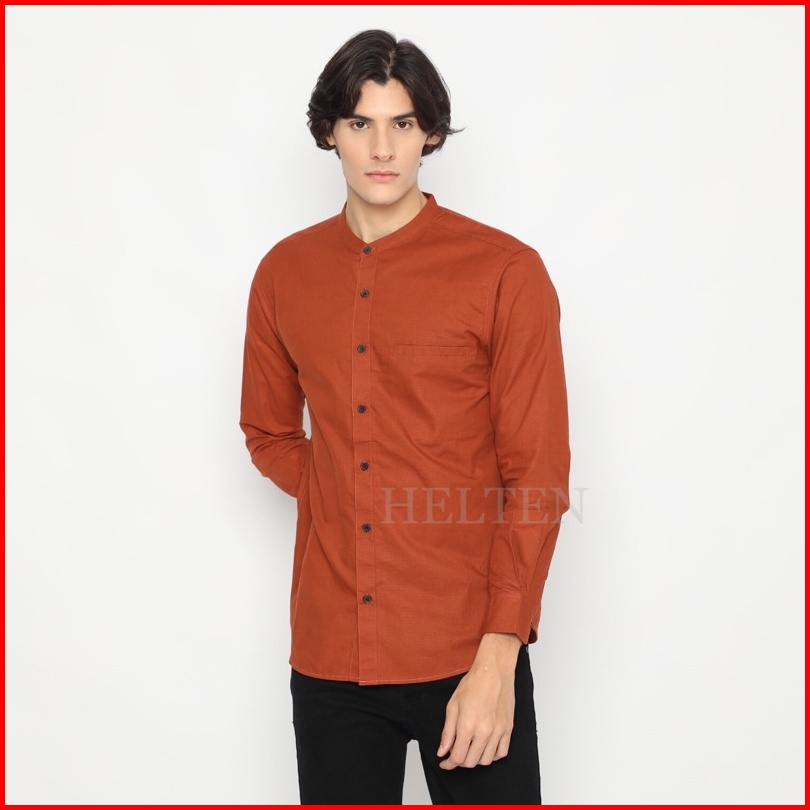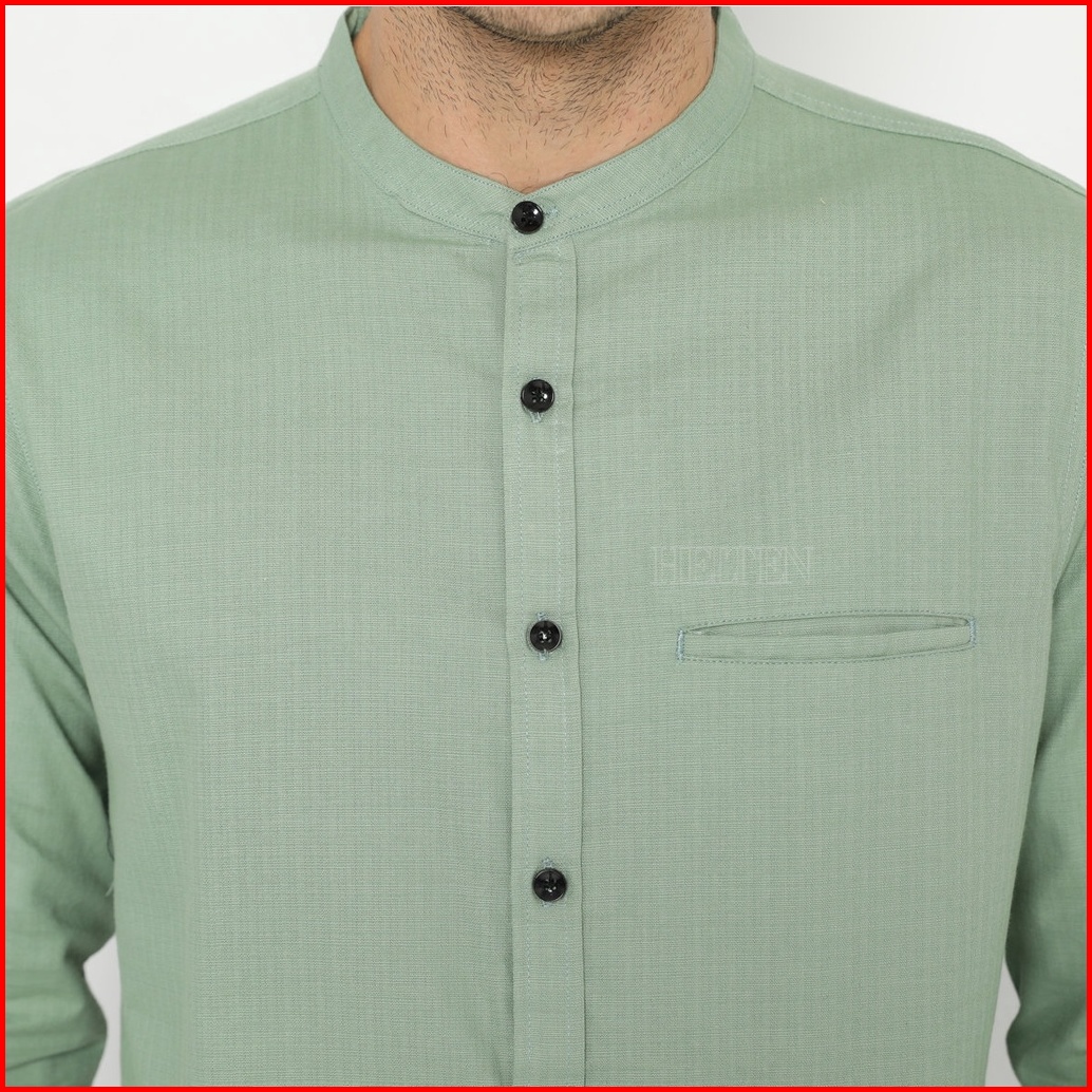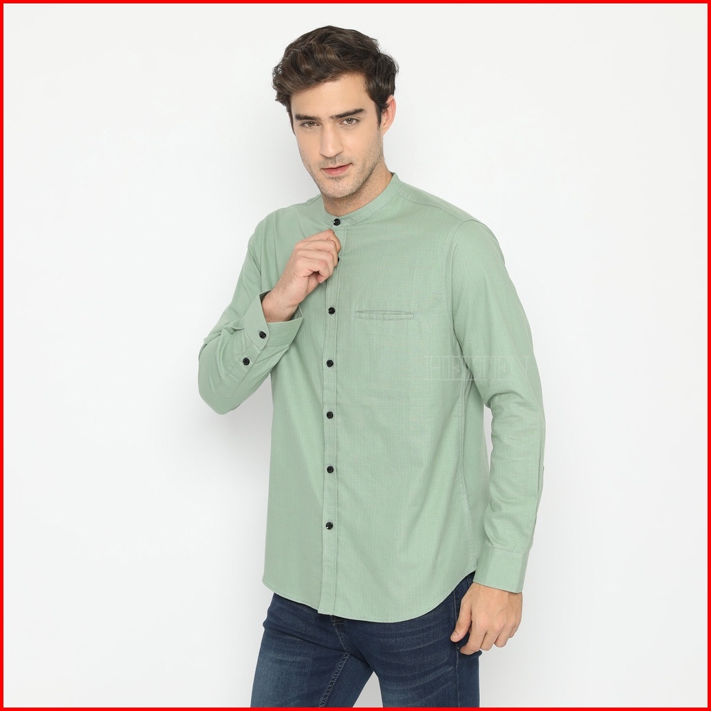 Helten Kemeja Koko Kerah Sanghai Lengan Panjang Warna Hijau Sage Saku Bobok Comfort Slim Banyak Warna