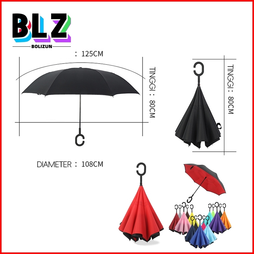 Bolizun Payung Terbalik Reverse Umbrella Payung Mobil Besar Gagang C