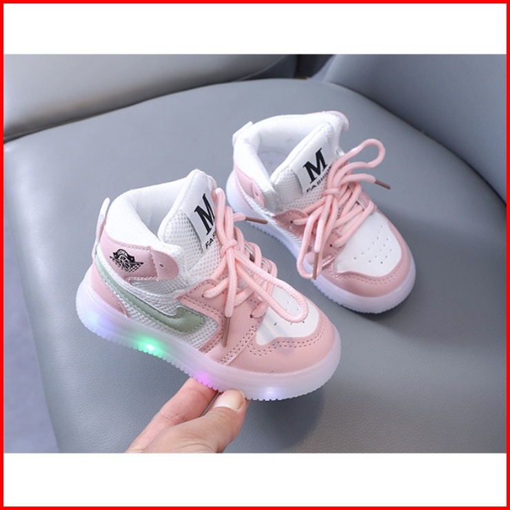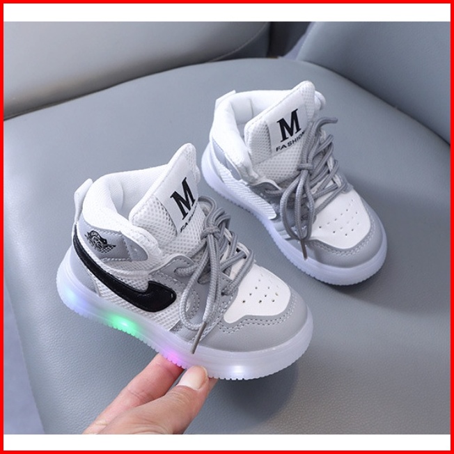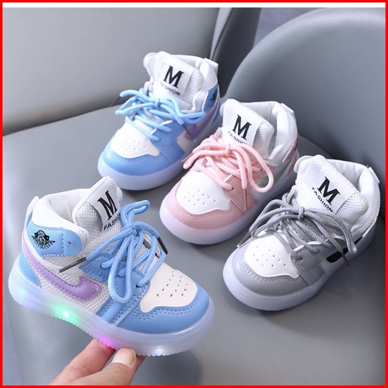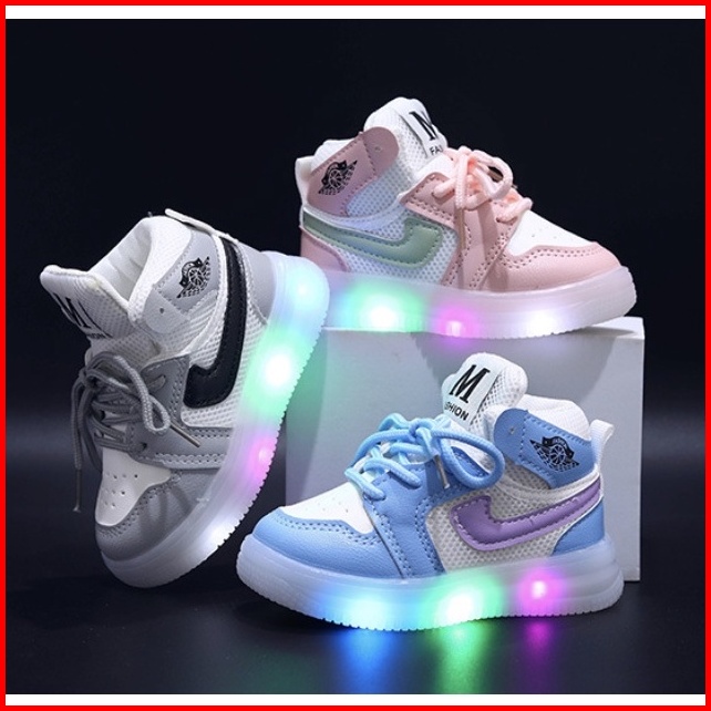 Babyfit Jordain 21-30 Sepatu Lampu Led Sneakers Anak Cewek Cowok Boots Ankle Sepatu Olahraga Sekolah Import Gs-0902r