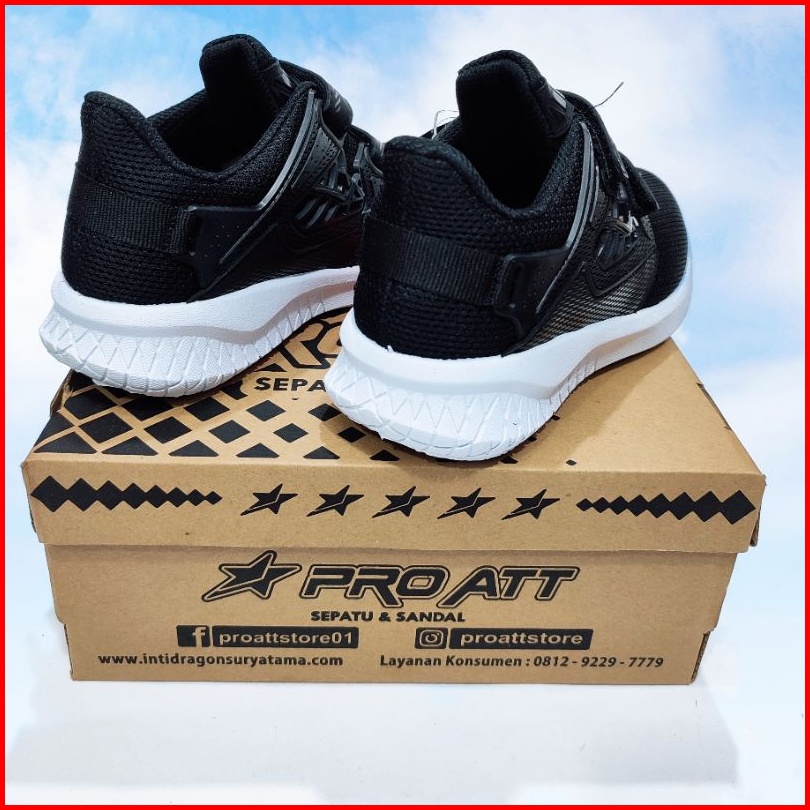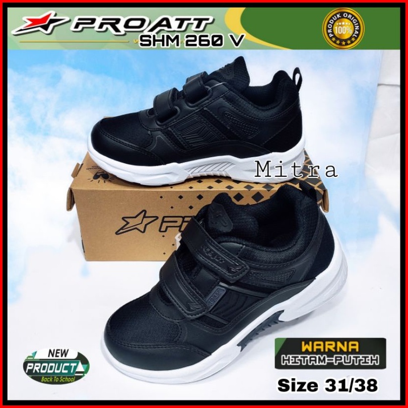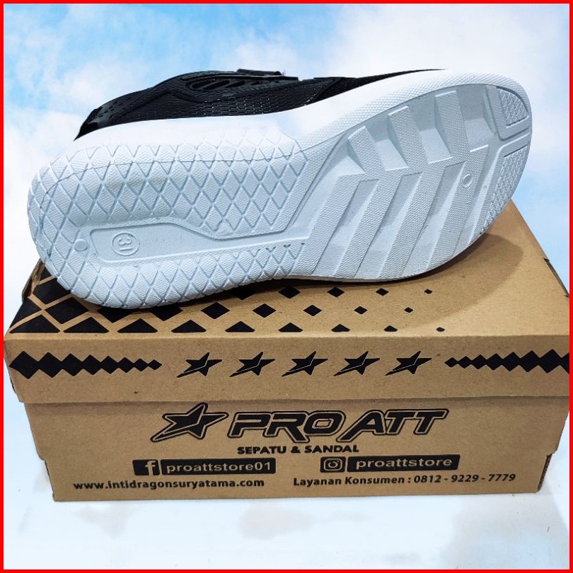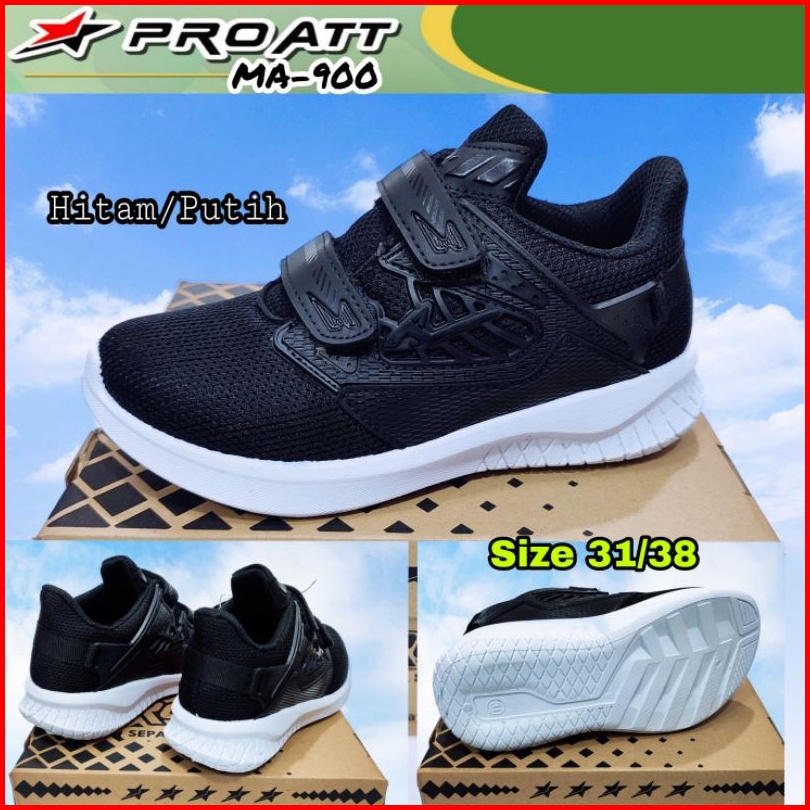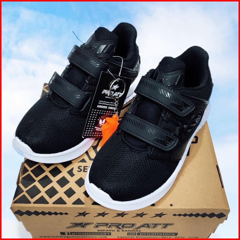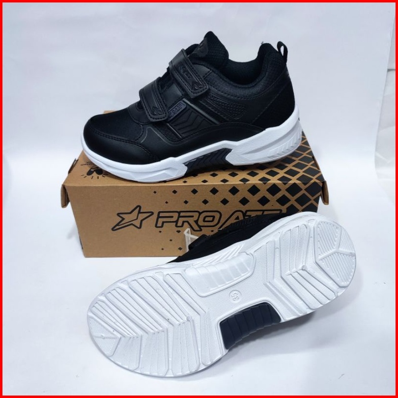 Pro Att Sepatu Sekolah Anak Cowok Cewek Hitam Putih Perekat Tempel Tanpa Tali Sol Karet Kekinian Size 31 Sd 38