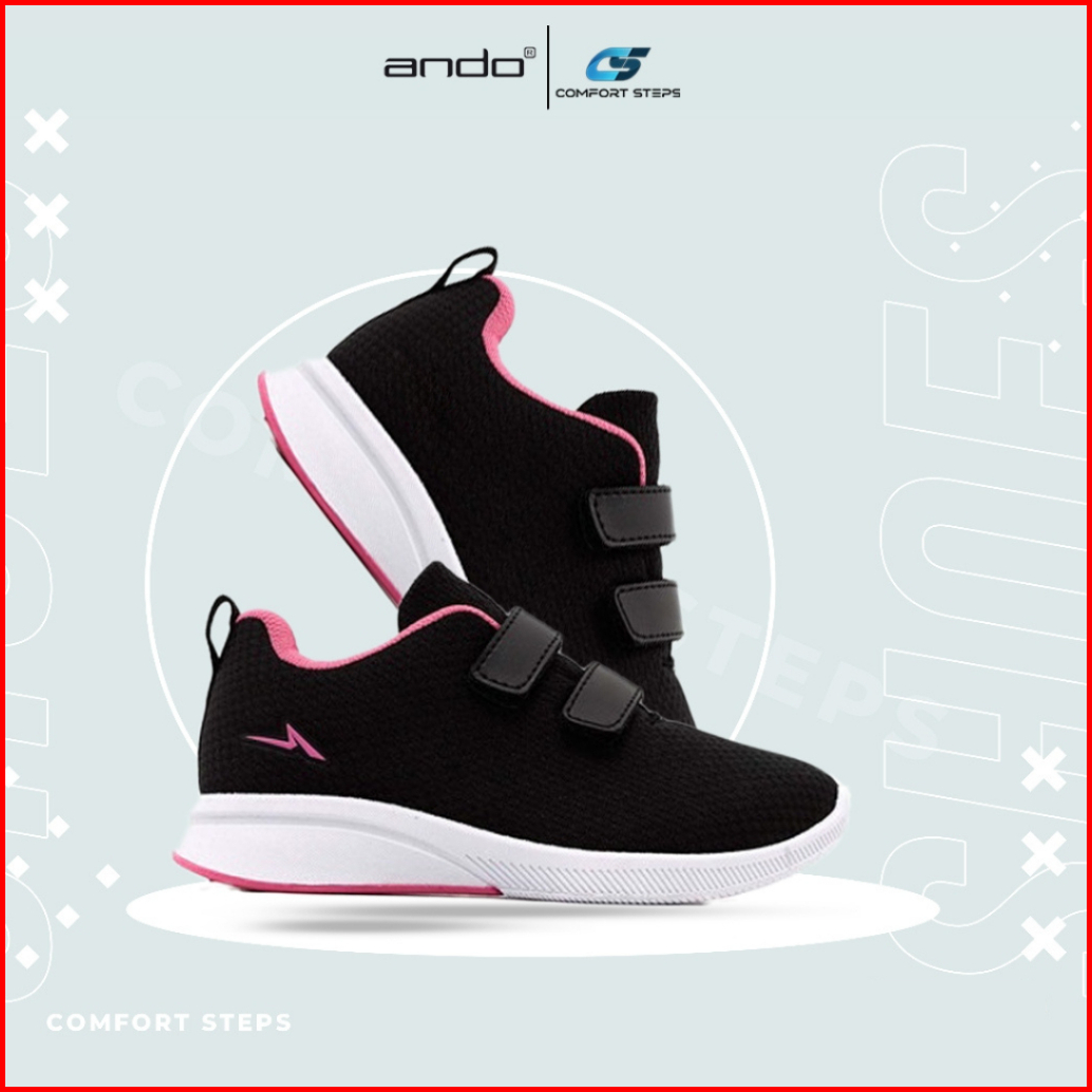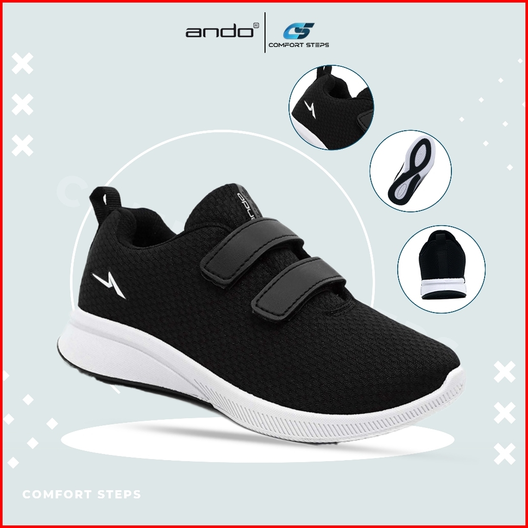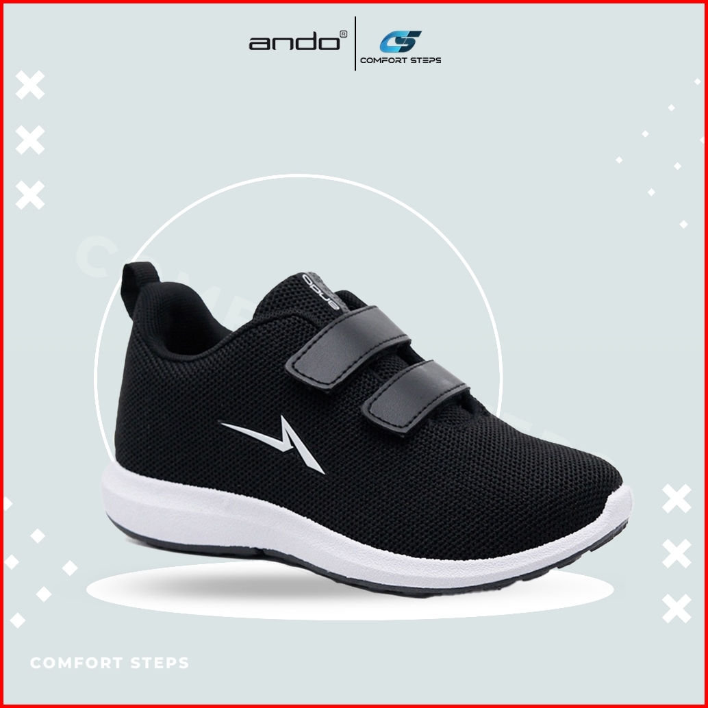 Sepatu Ando Sneakers Sekolah Perekat Anak Laki-laki Perempuan Sepatu Velcro Sekolah Size 29-40