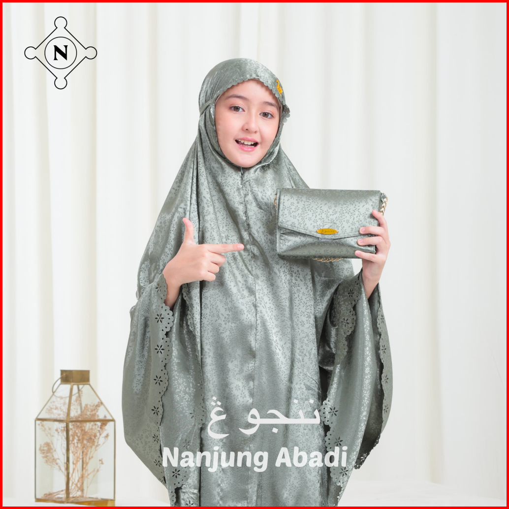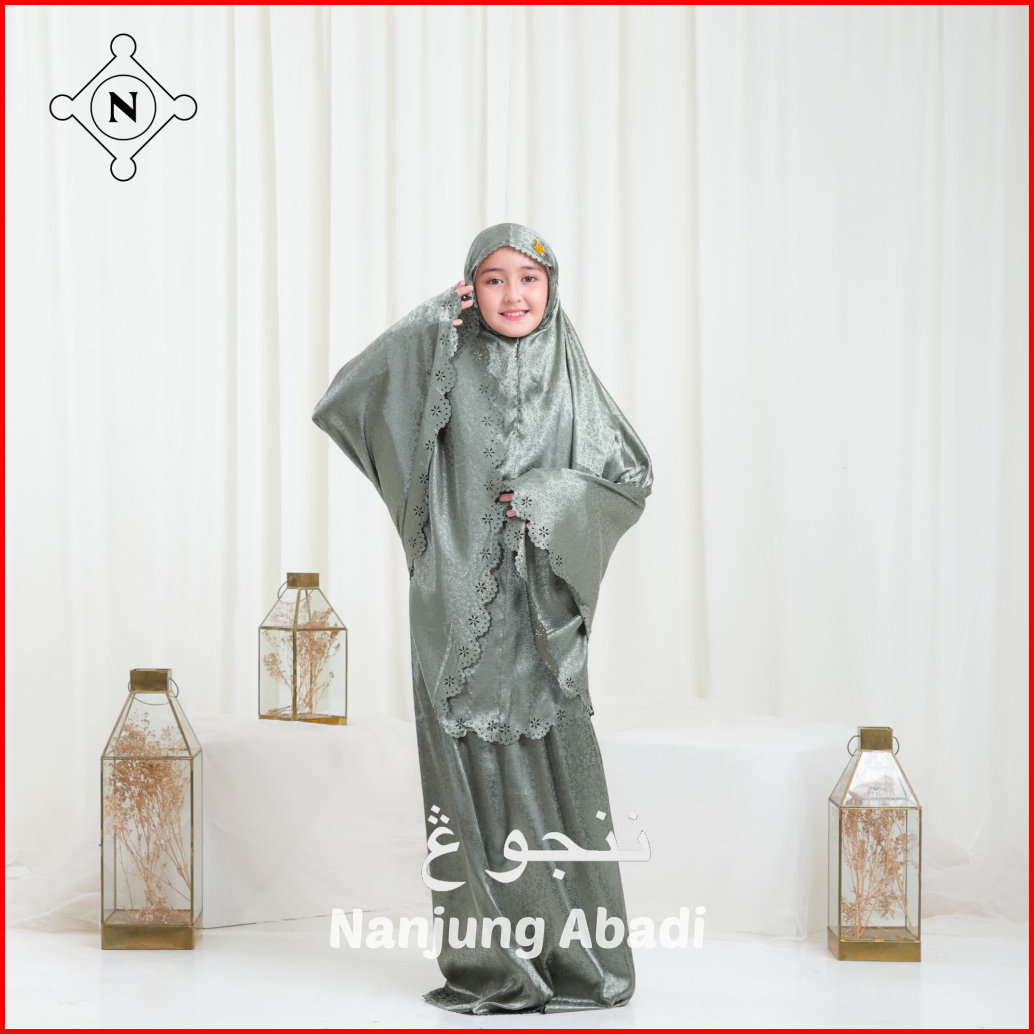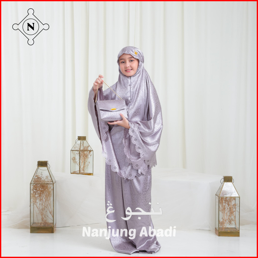 Nanjung Abadi - Mukena Lafiya Travelling Anak 6-12 Thn Resleting 2in1 Armani Jaguar Silky Motif Bunga Premium Kids Praye