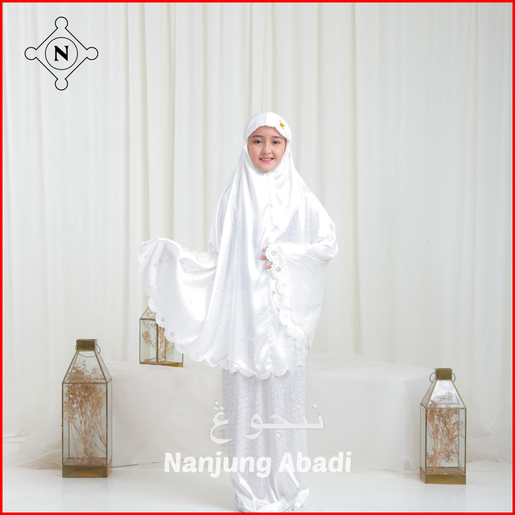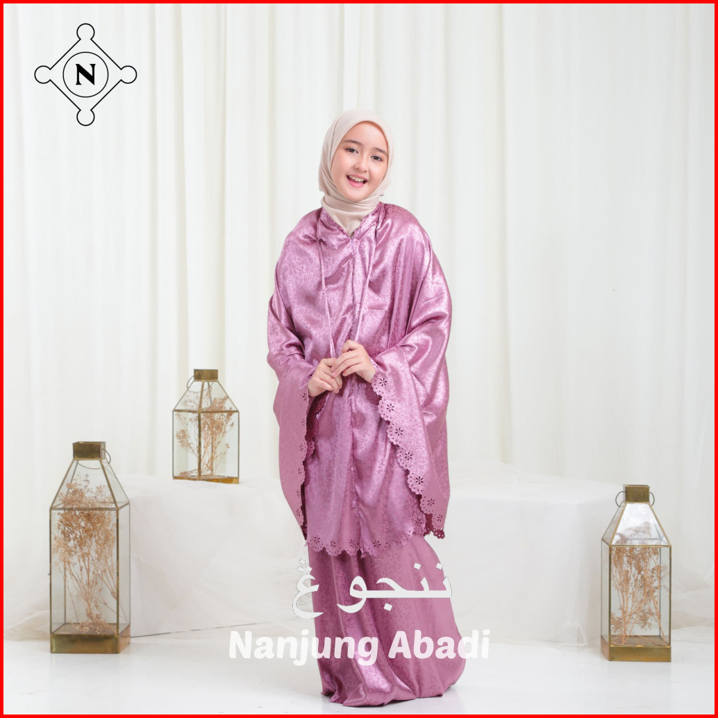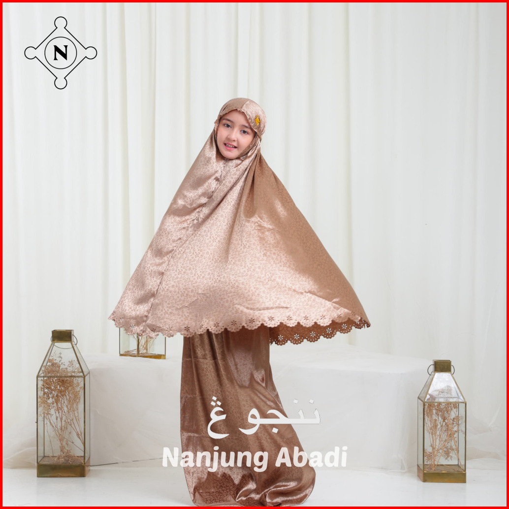 Nanjung Abadi - Mukena Lafiya Travelling Anak 6-12 Thn Resleting 2in1 Armani Jaguar Silky Motif Bunga Premium Kids Praye