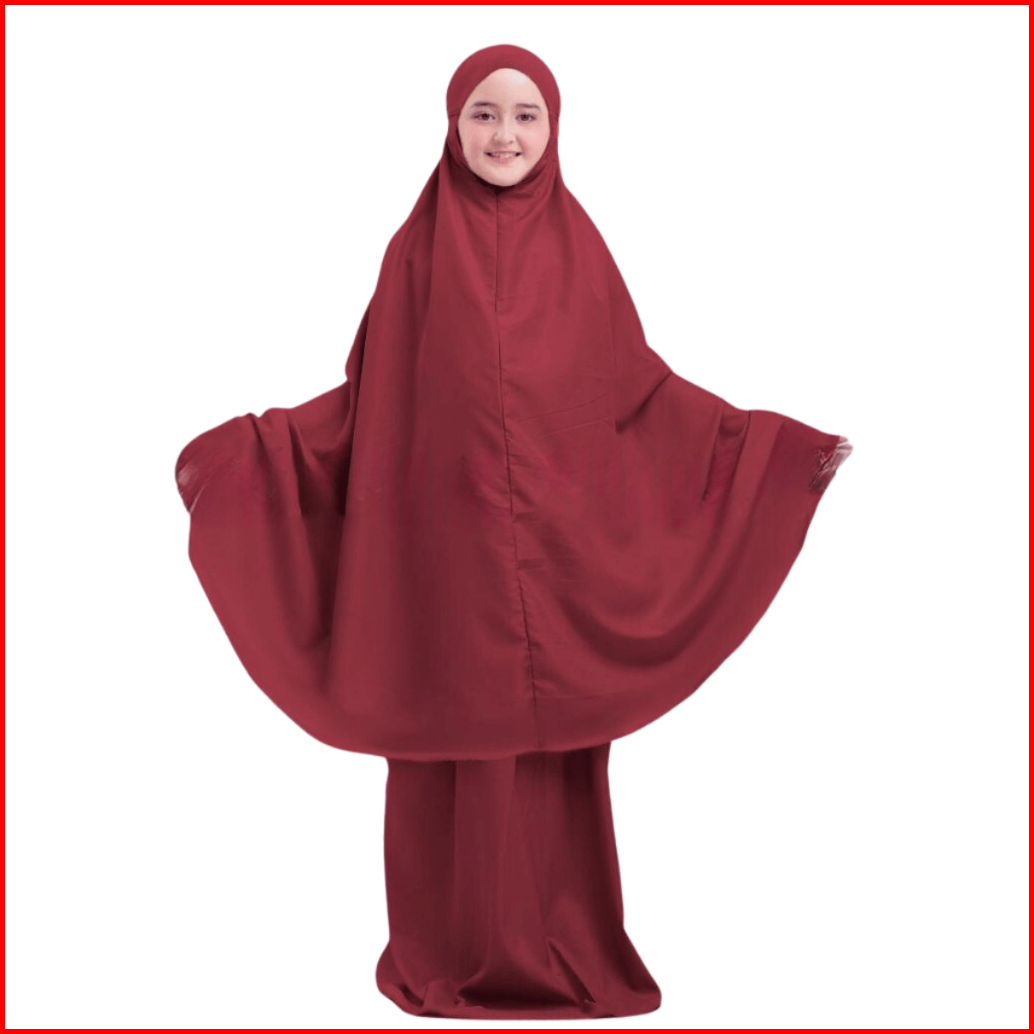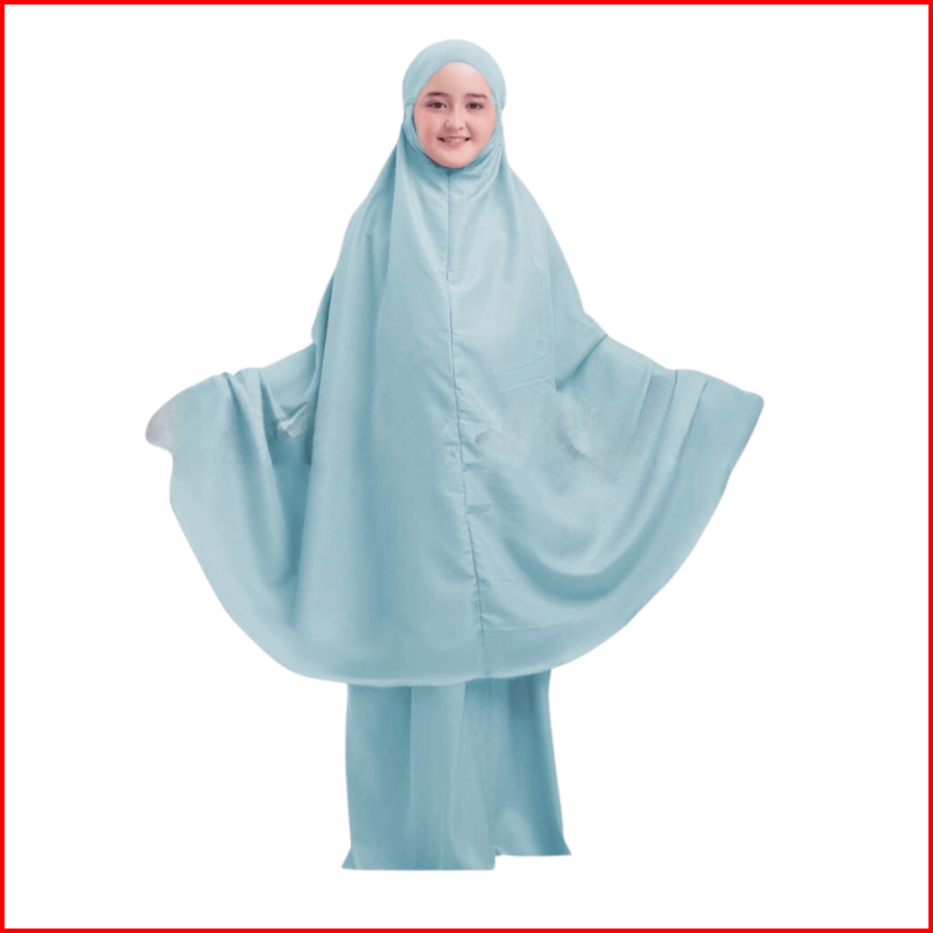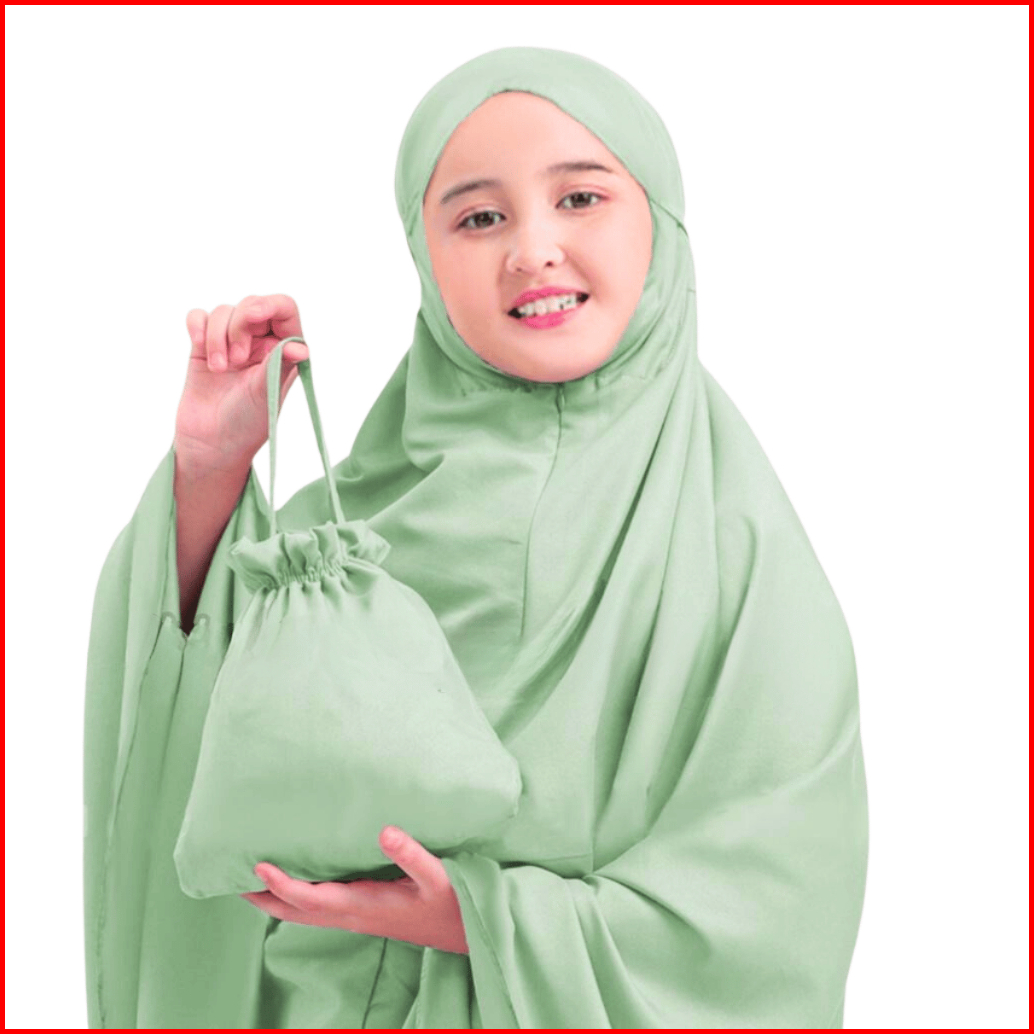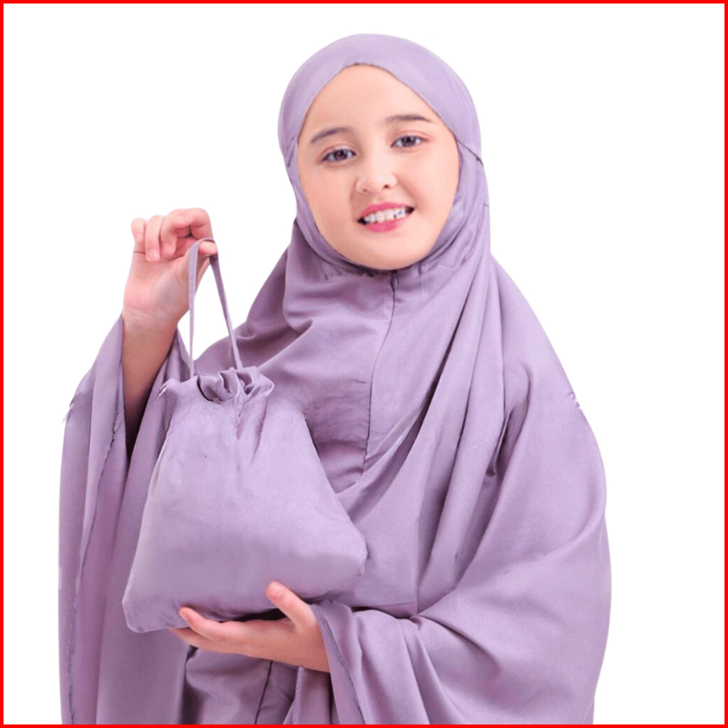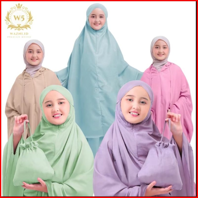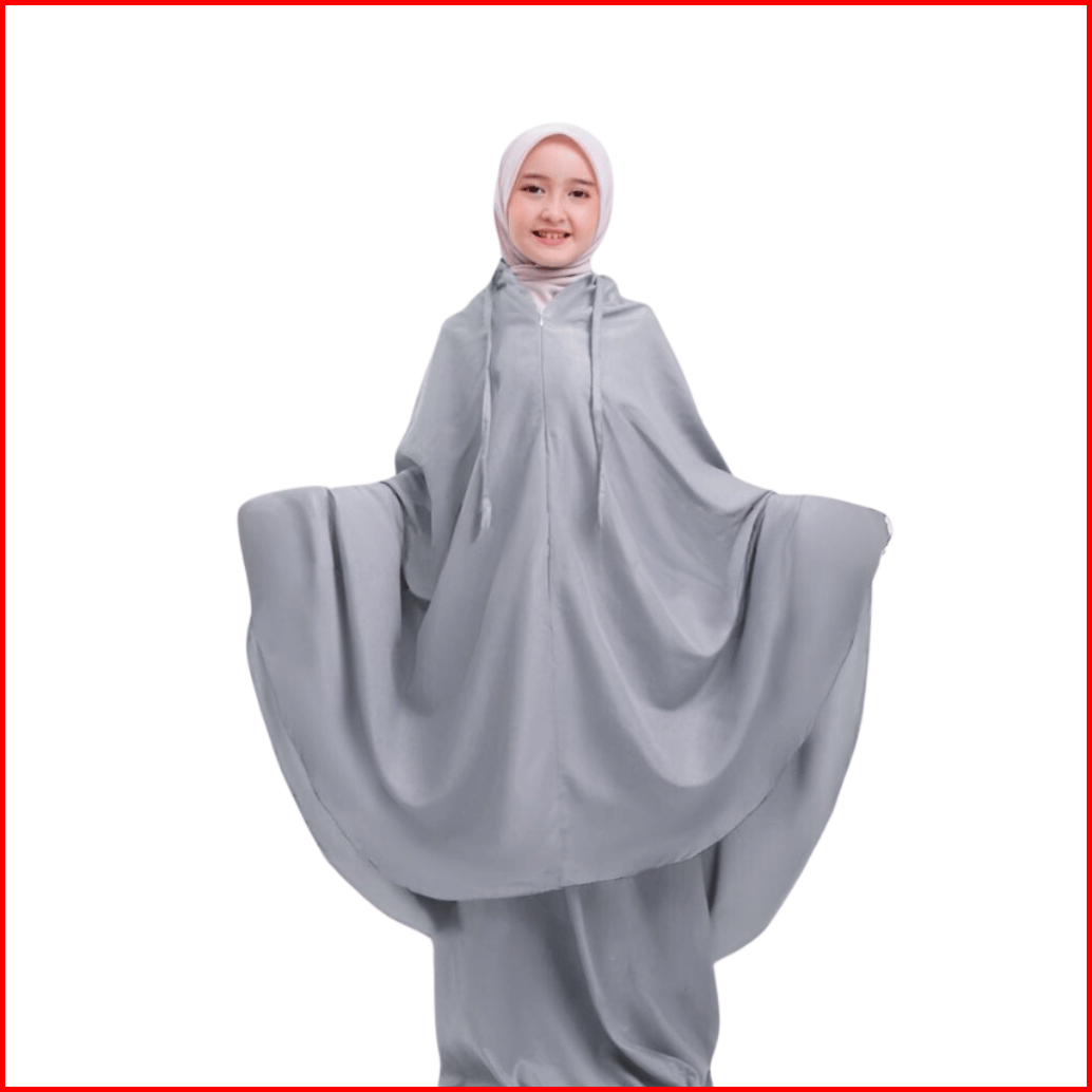 Alya Series Mukena Anak Traveling 2 In 1 Resleting Dagu Katun Premium Polos Umur 7- 15 Tahun