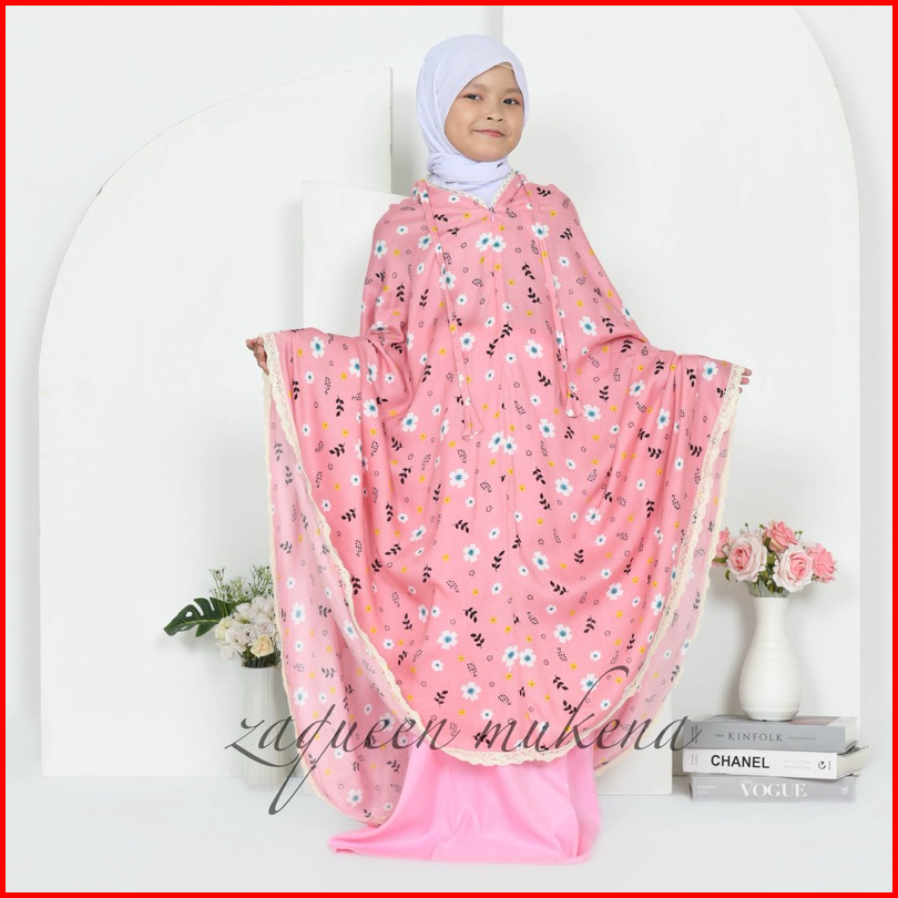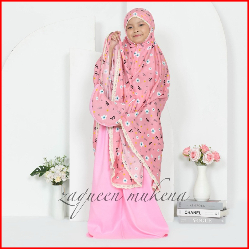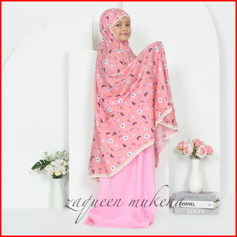 Mukena Anak Tanggung Usia 11-15 Tahun Resleting 2in1 Rayon Premium Motif Renda Rajut