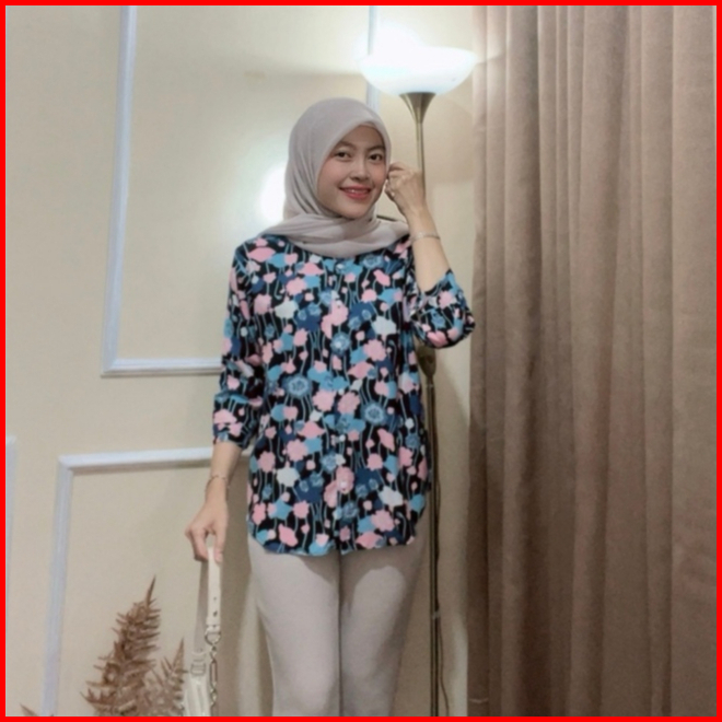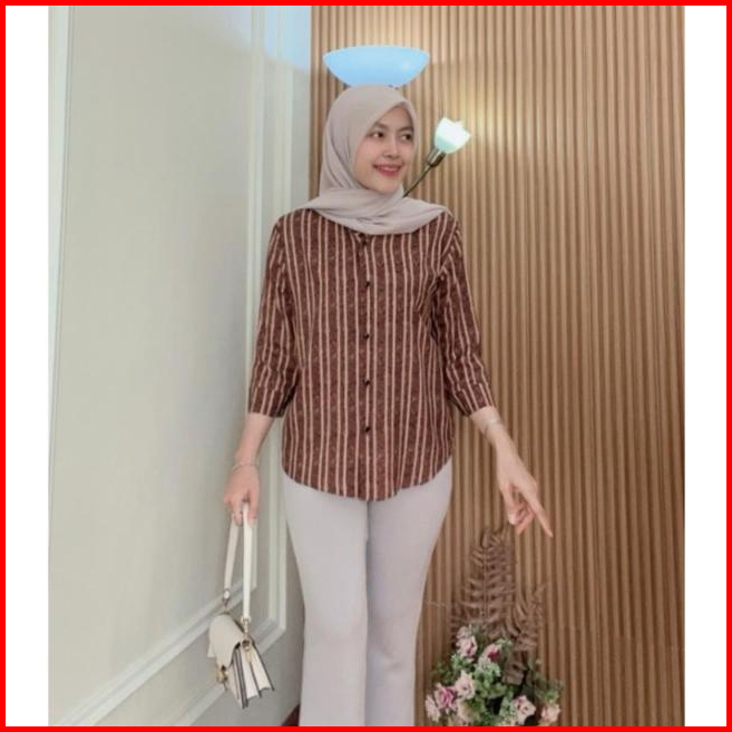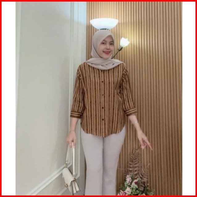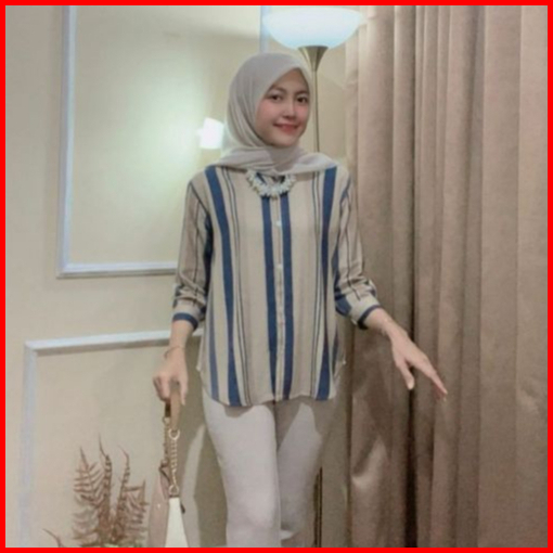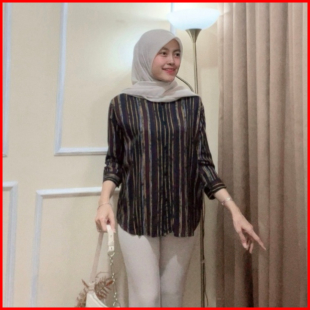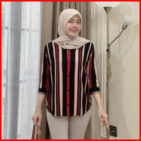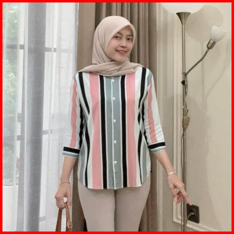 Kemeja Salur Wanita Bahan Rayon Oversize Atasan Wanita Jumbo Daily Top Salur