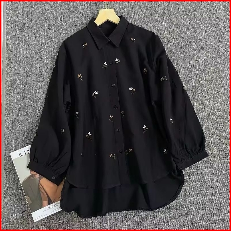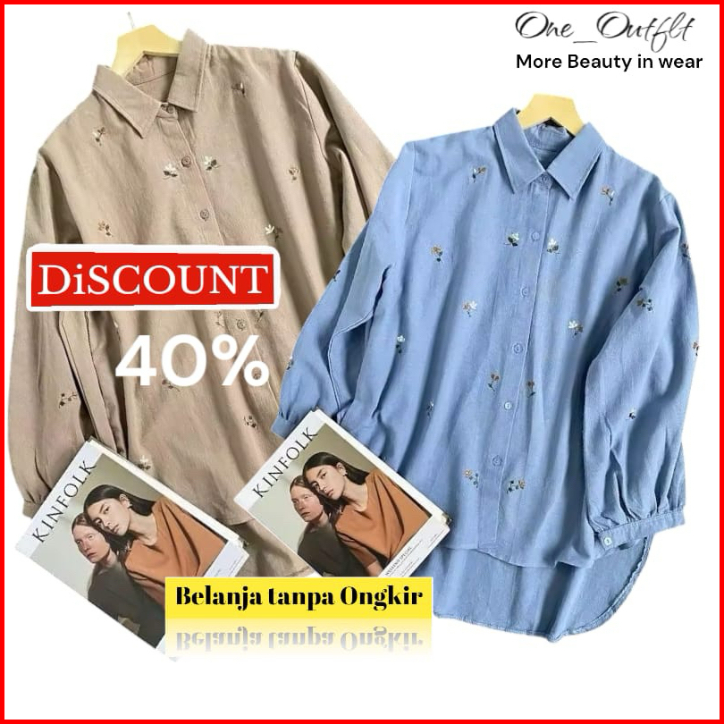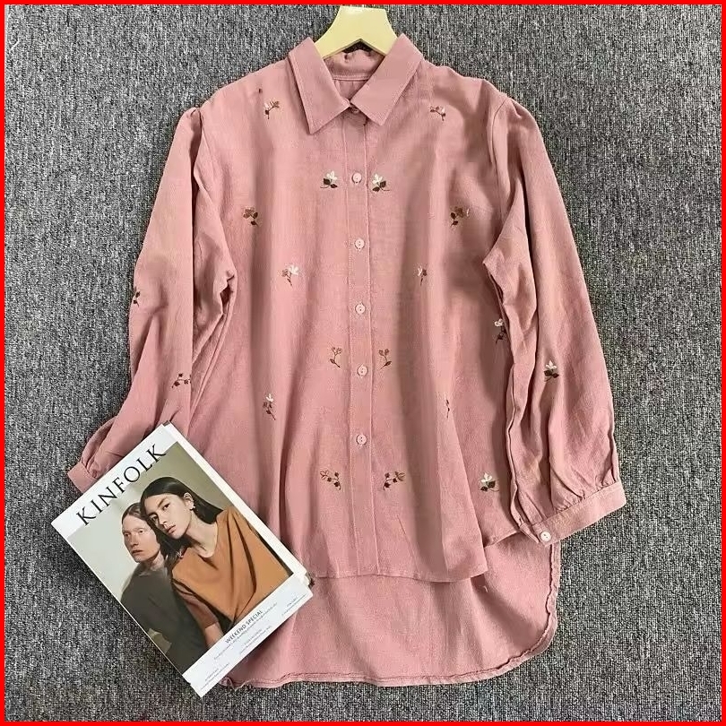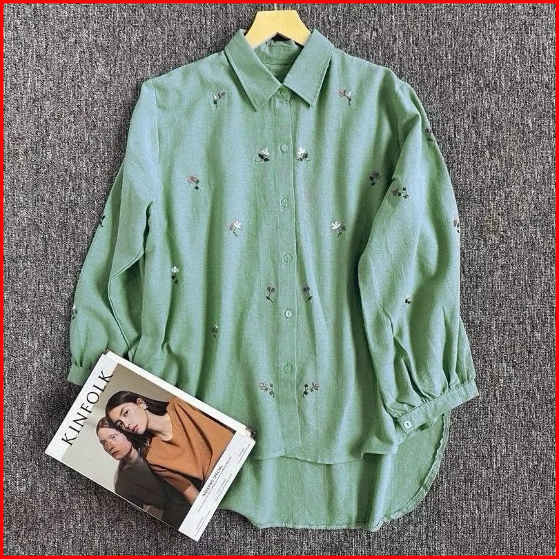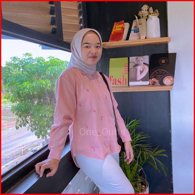 Kemeja Linen Bordir Wanita Kemeja Basic Blouse Atasan Kemeja Oversize Wanita Matt Muslim Matt Linen Rami Ootd