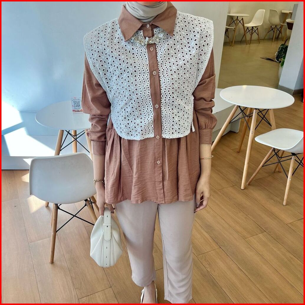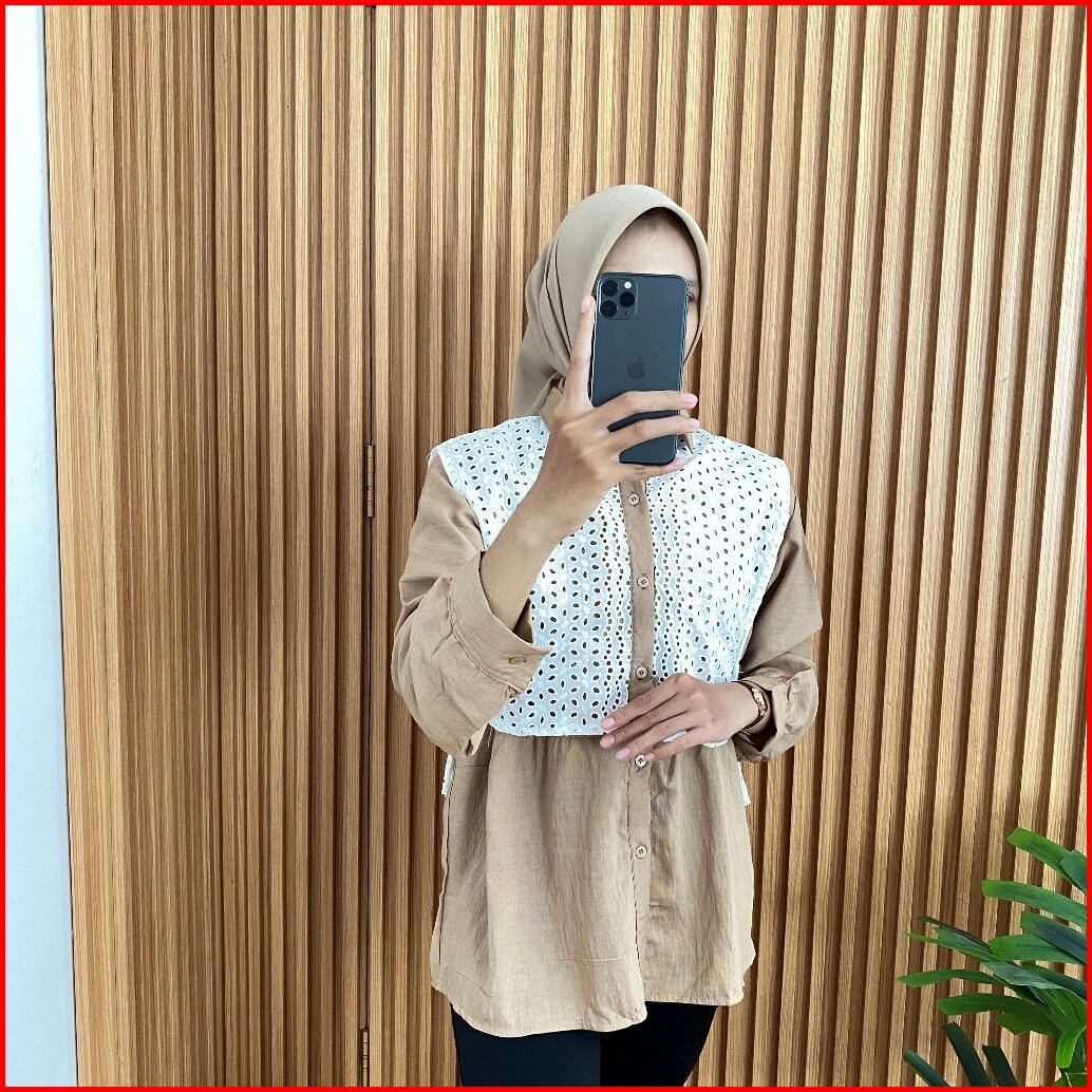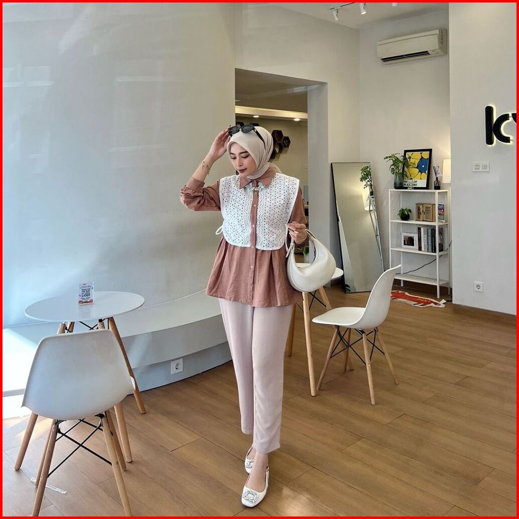 Kemeja Wanita Lengan Panjang Pollo Linen Mix Katun Broklat Dena