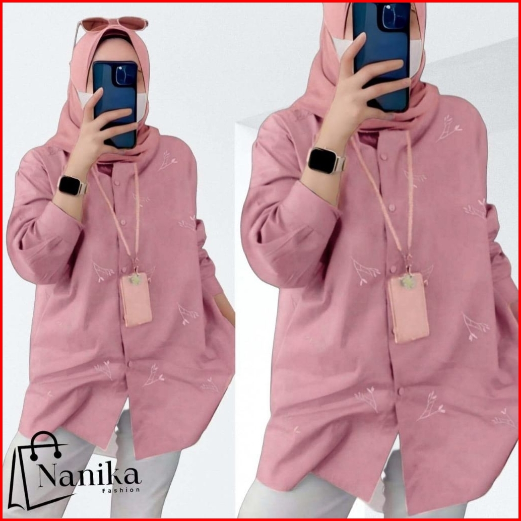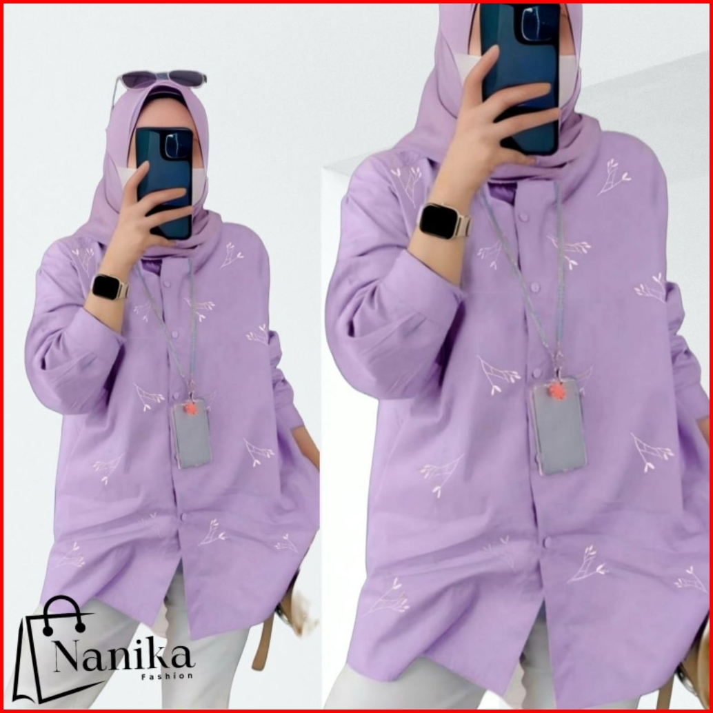 Kemeja Bordir Bunga Katun Premium Wanita Jumbo. Atasan Lengan Panjang Flowi Shirt By Masilca