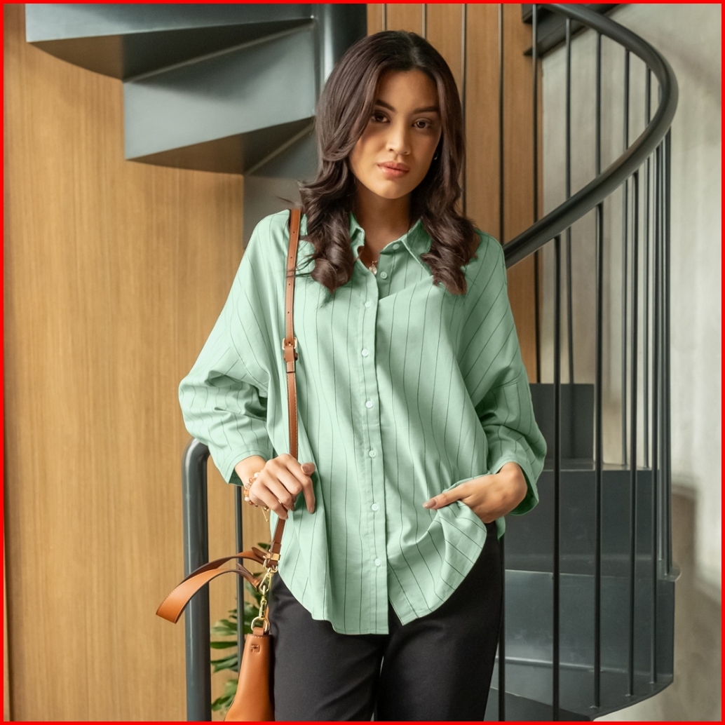 C2 Juarez Green 7 8 Kemeja Casual Oversize Wanita