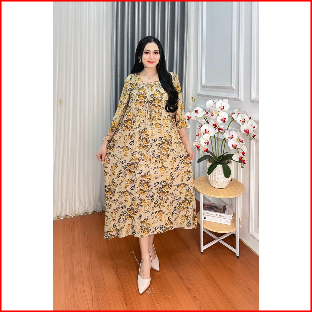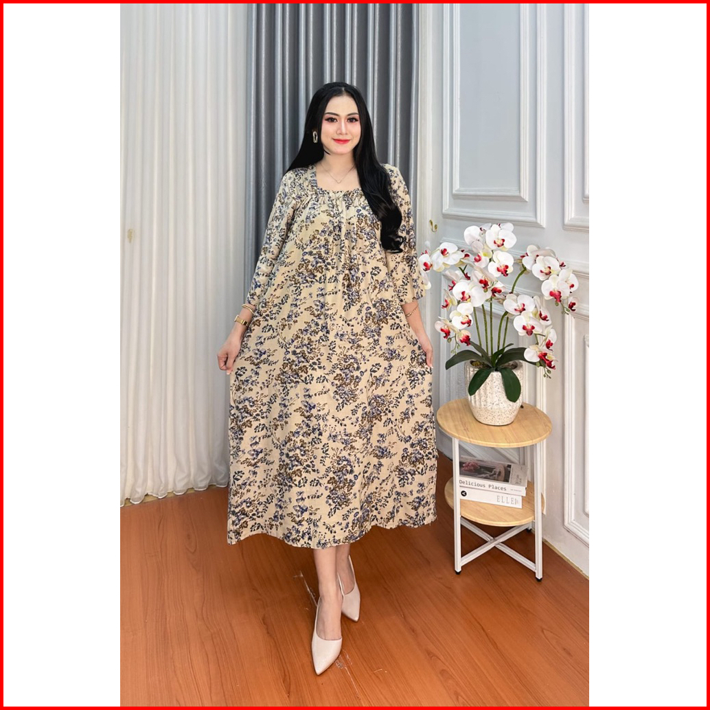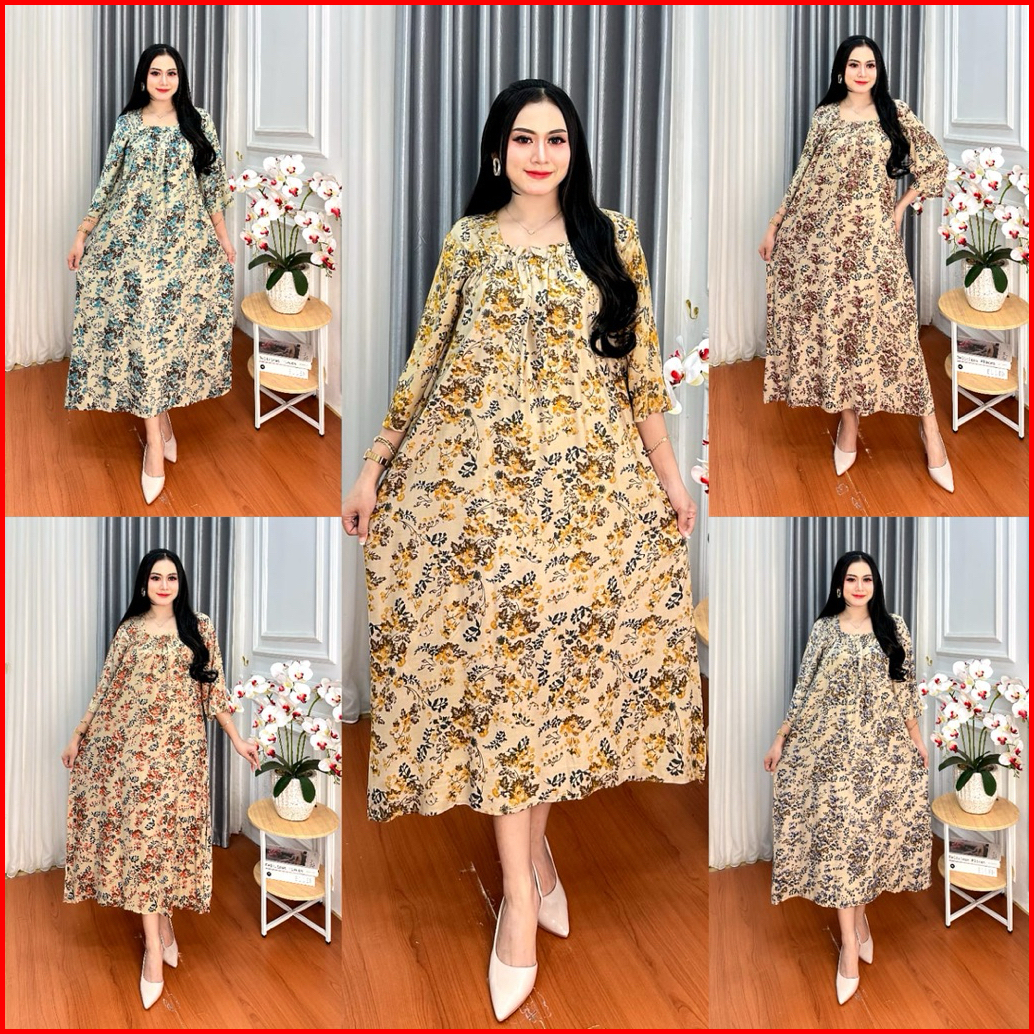 Dress Fuji Motif Sakura Dress Kekinian Jumbo Mama Muda By Adrixny Fashion