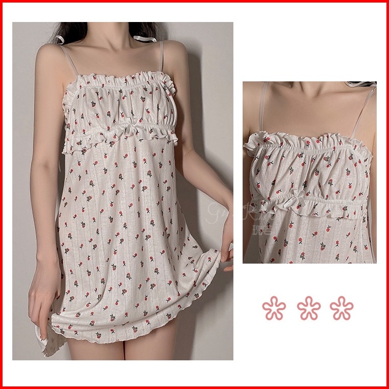 Uninice Pengiriman Rahasia Daster Tali Satu Kekinian Terbaru Bunga Kecil Baju Tidur Sexy