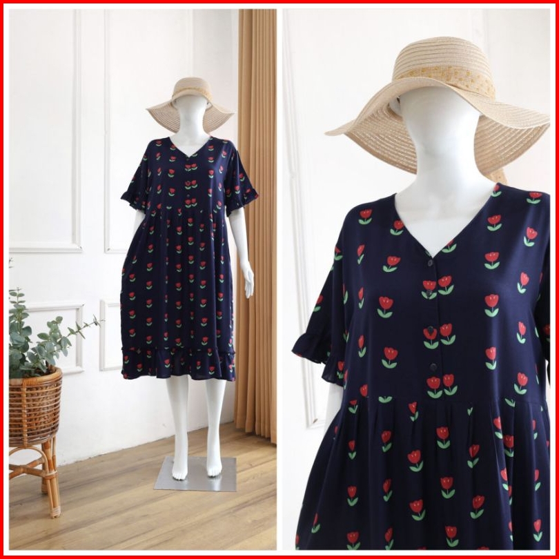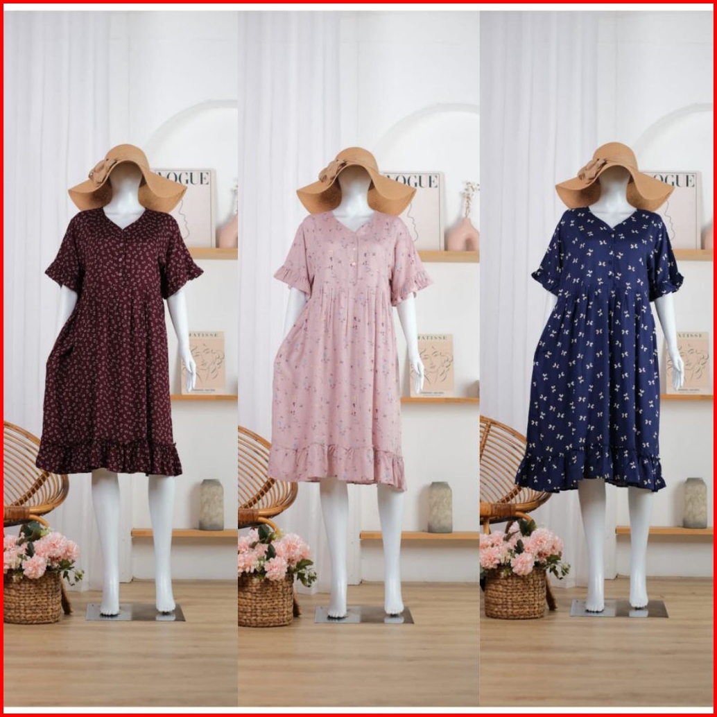 Daster Pendek Selutut Busui Friendly Rayon Premium Clara Dress Homedress Busui Pendek Rayon Premium