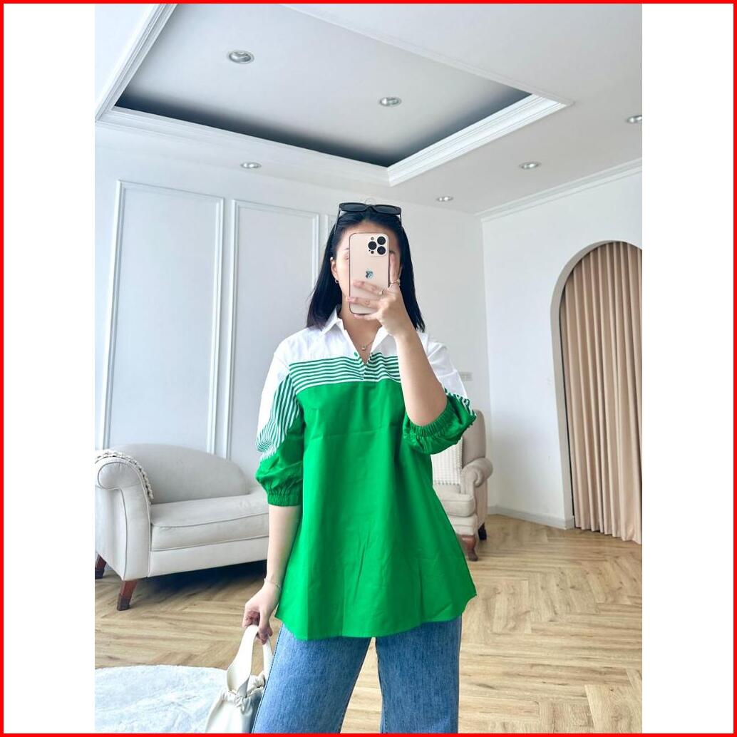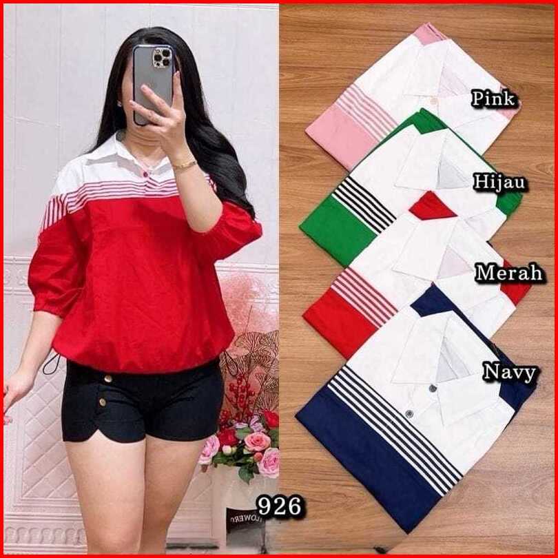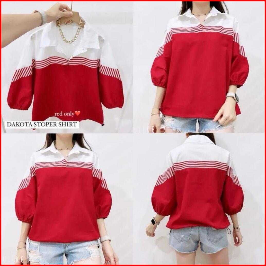 Nando Kemeja Nagita Striped Lengan 3 4 Karet Kancing Katun Poplin Premium Viral 101