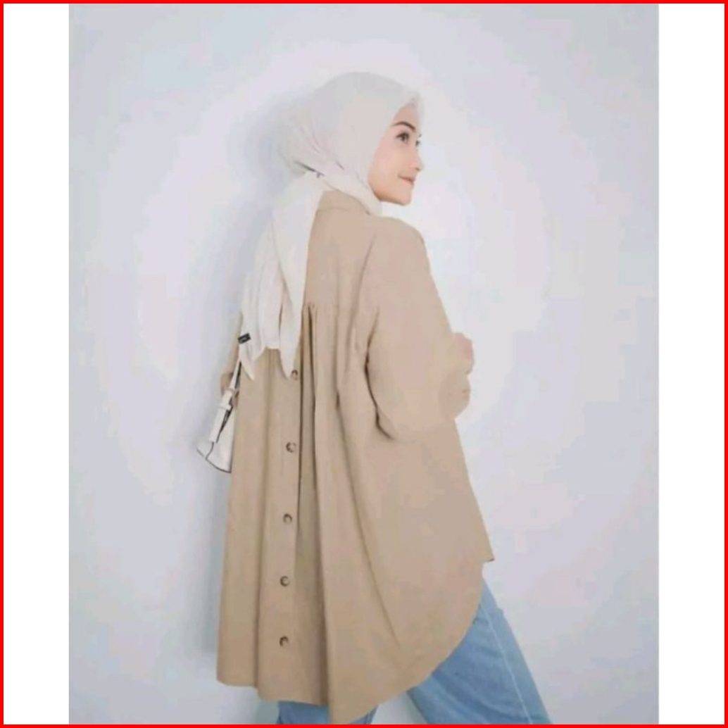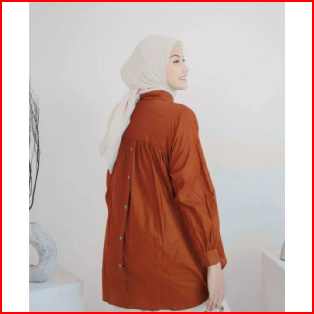 Rika Top Linen Premium - Kemeja Kancing Belakang Linen Oversize Kemeja Blouse Atasan Wanita Terlaris