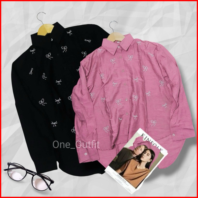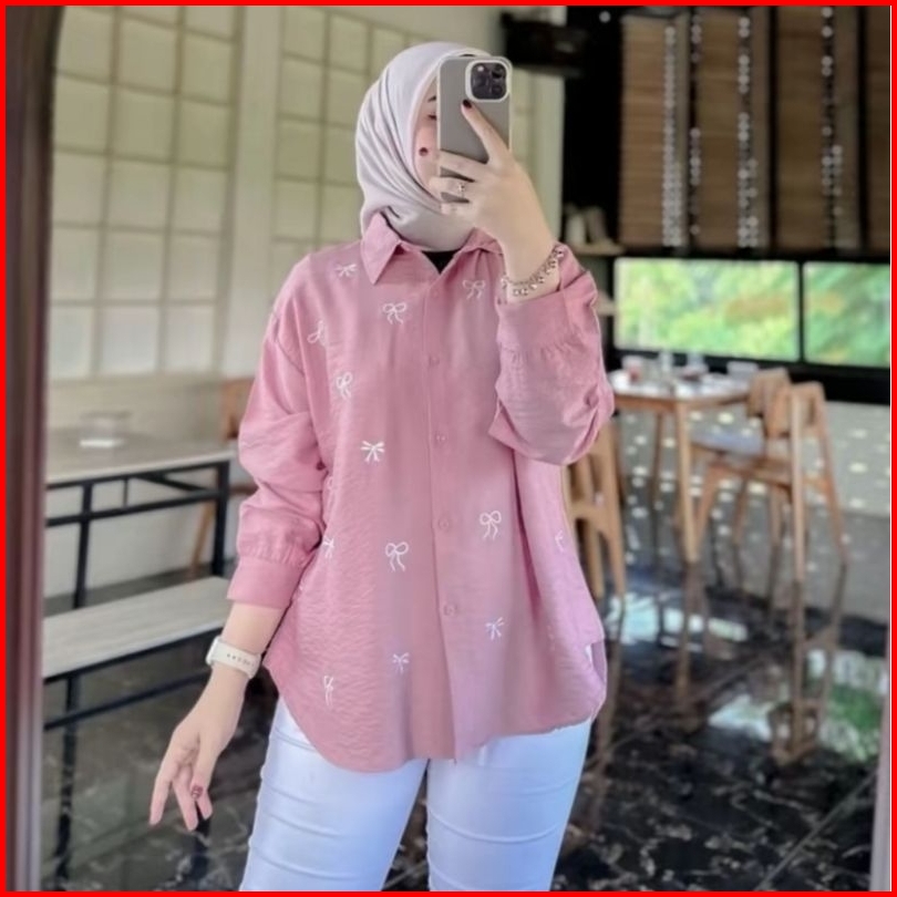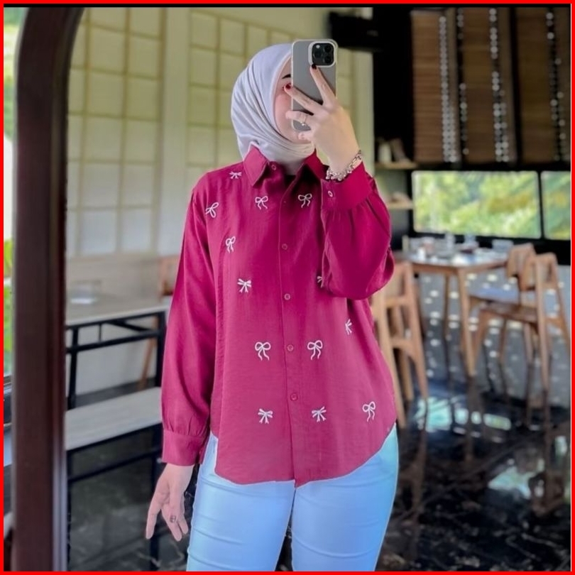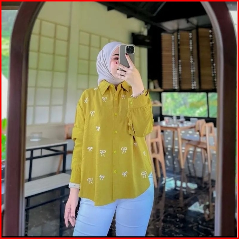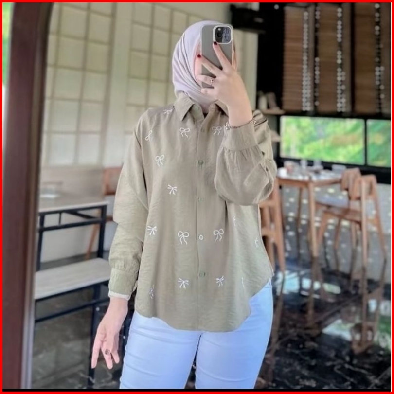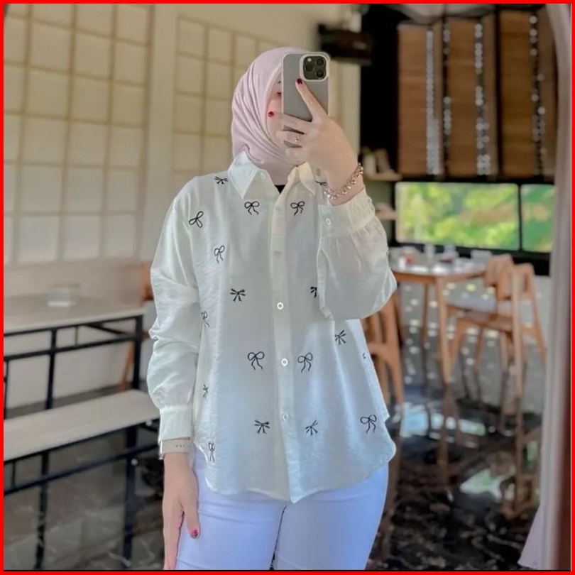Blouse Wanita Bordir Pita Kemeja Wanita Pure Linen Atasan Blouse Bordir Korean Style