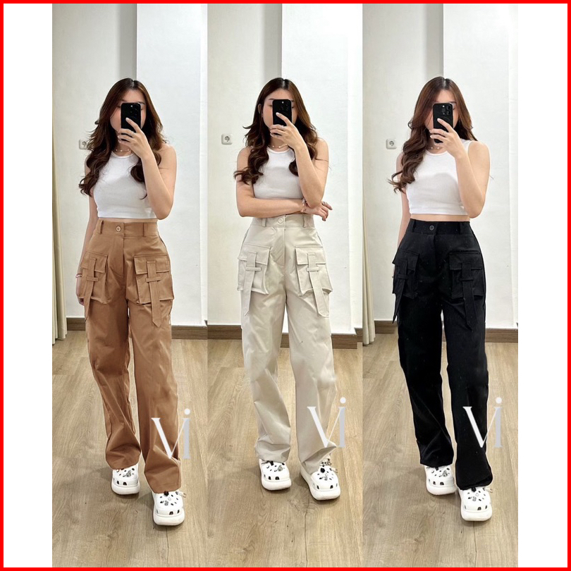 Yura Cargo Wanita Cargo Pant Pocket Celana Kargo Wanita Casual