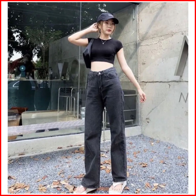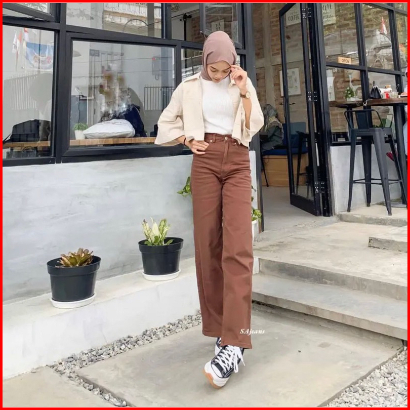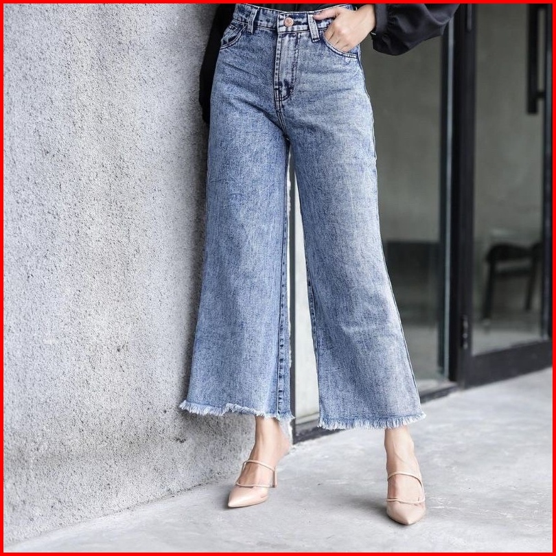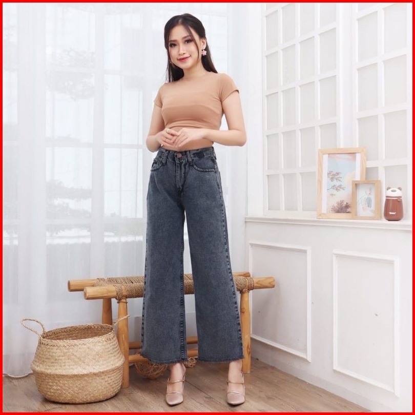 Celana Highwaist Kulot Loose Jeans Wanita Non Stret