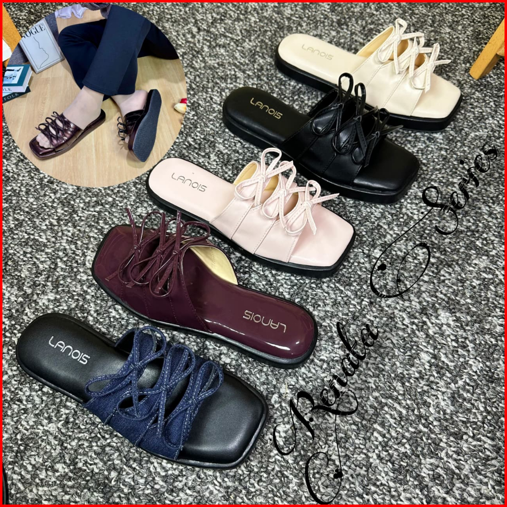 Sendal Renata Sandal Flat Premium Kekinian Sandal Slop Pita Sendal Cewek Platform 3cm Empuk