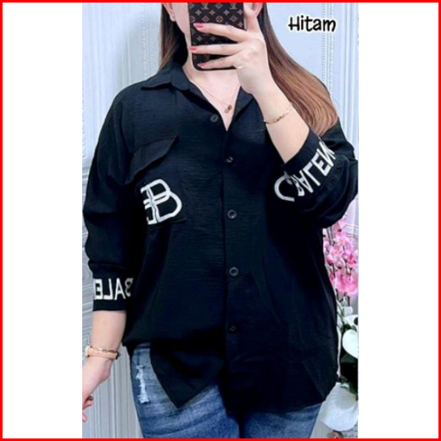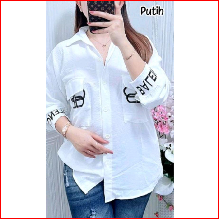 Kemeja Wanita Sablon Kekinian Paling Laris Bahan Crincle Airflow