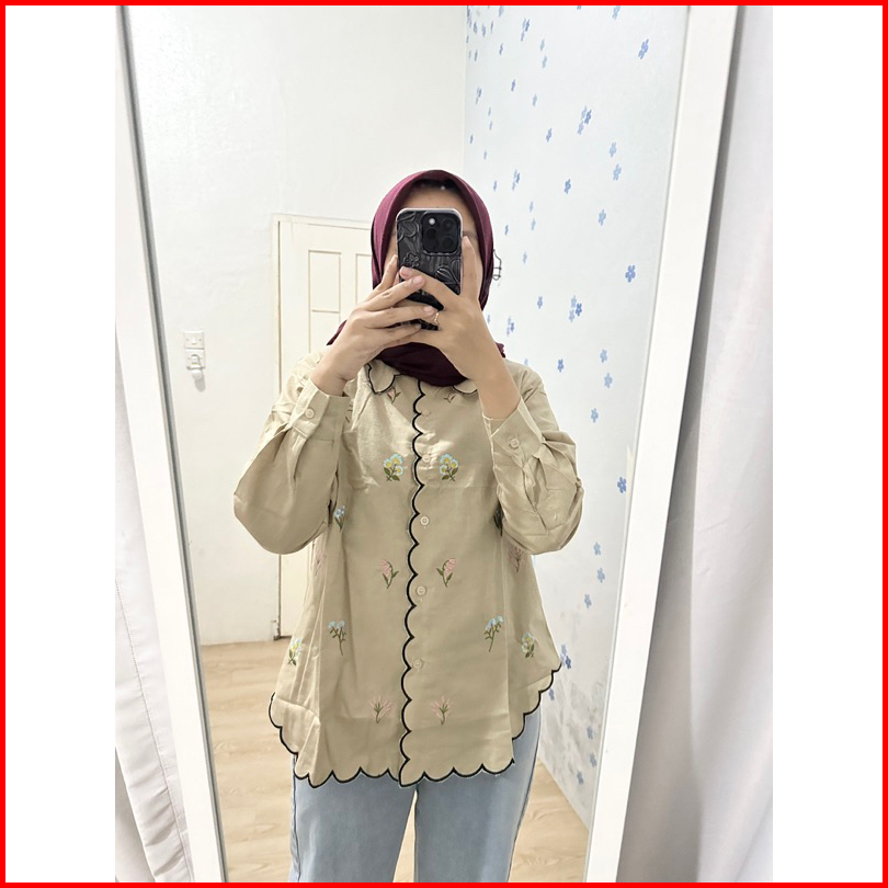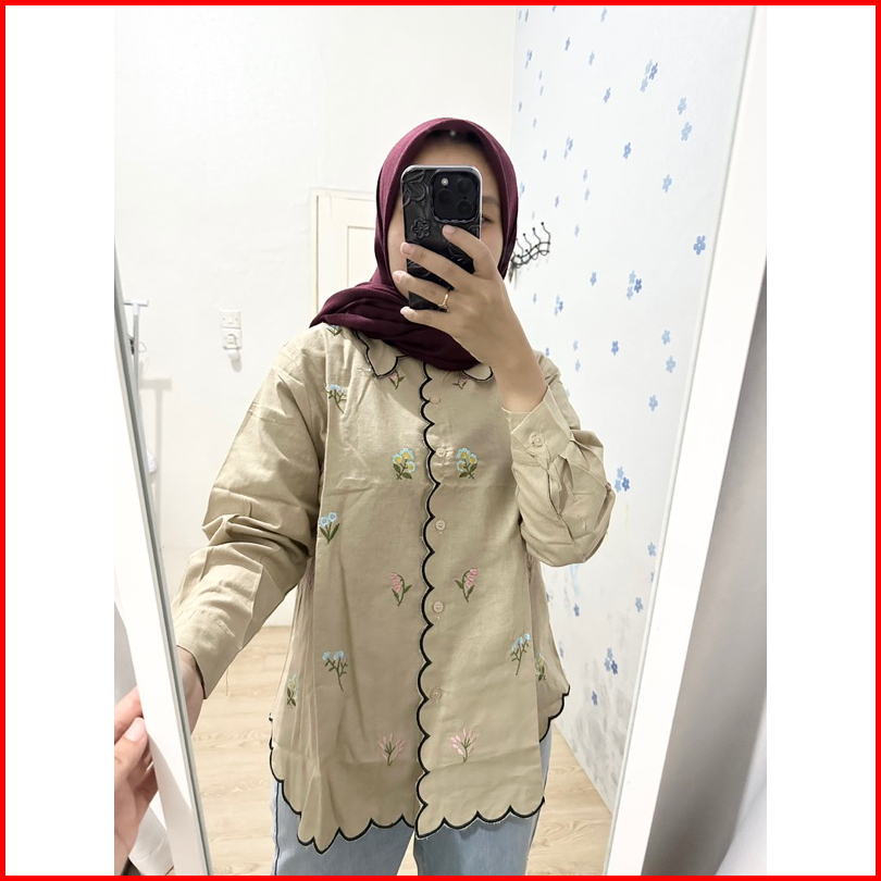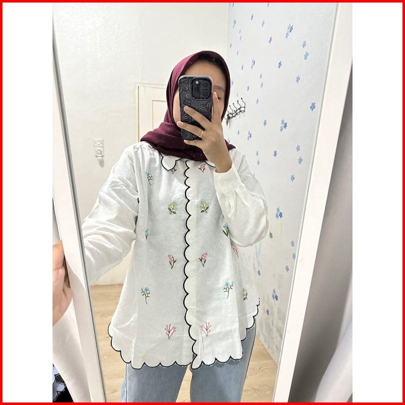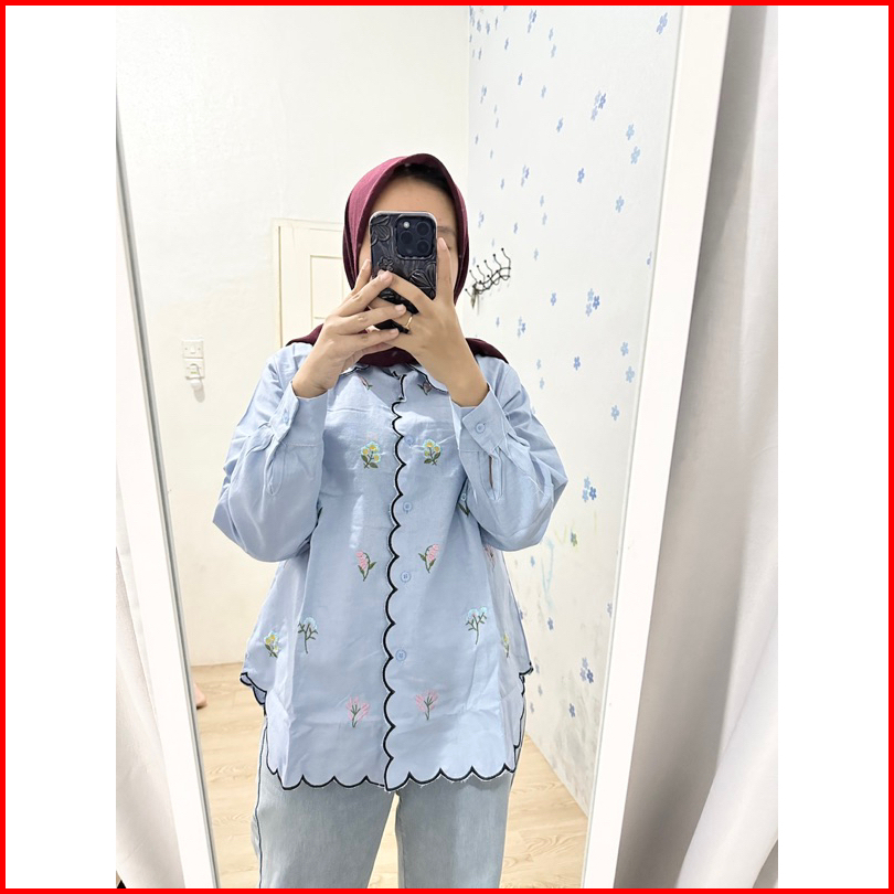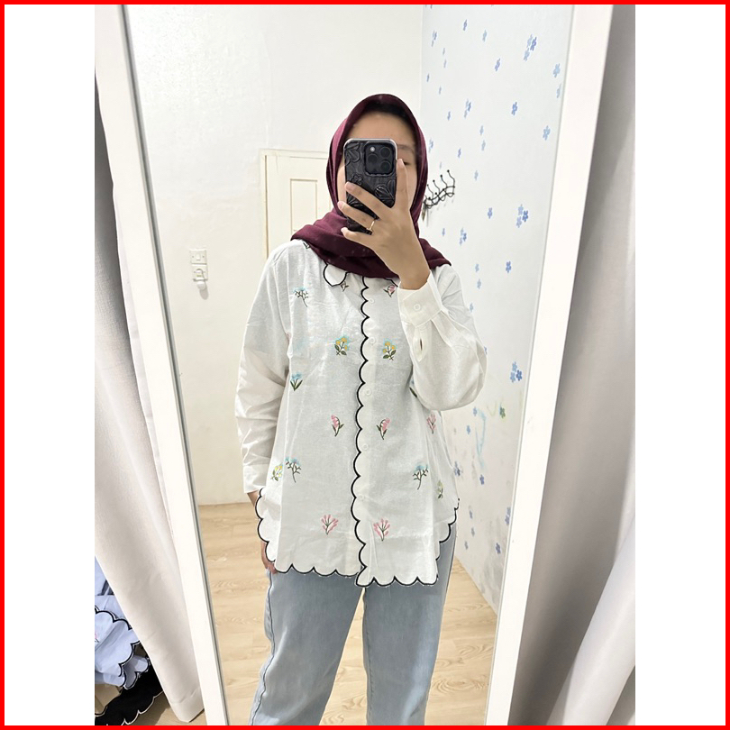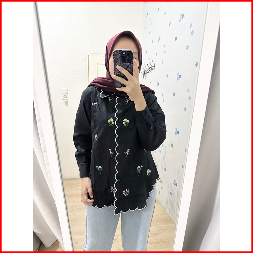 Zhiva Top Bordir Kemeja Bordir Kemeja Bunga Atasan Bordir