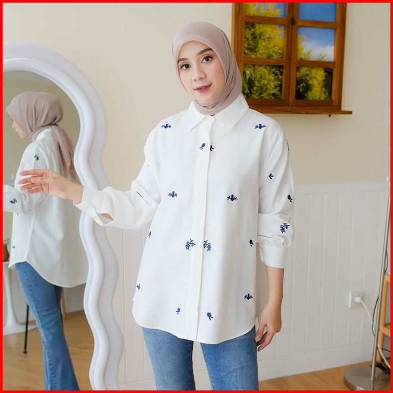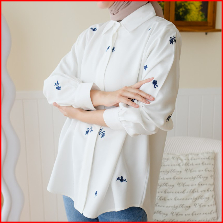 Odeca Hafa Top Kemeja Bordir Atasan Wanita