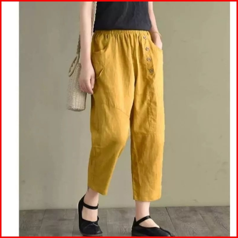 Celana Wanita Unqo 7 8 Katun Twill Stretch Combad Premium Pinggang Full Karet