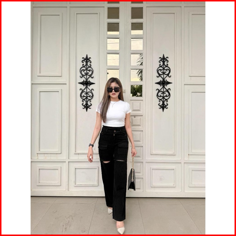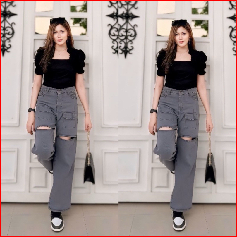 Cargo Jeans Sobek Wanita Celana Jeans Wanita Lose