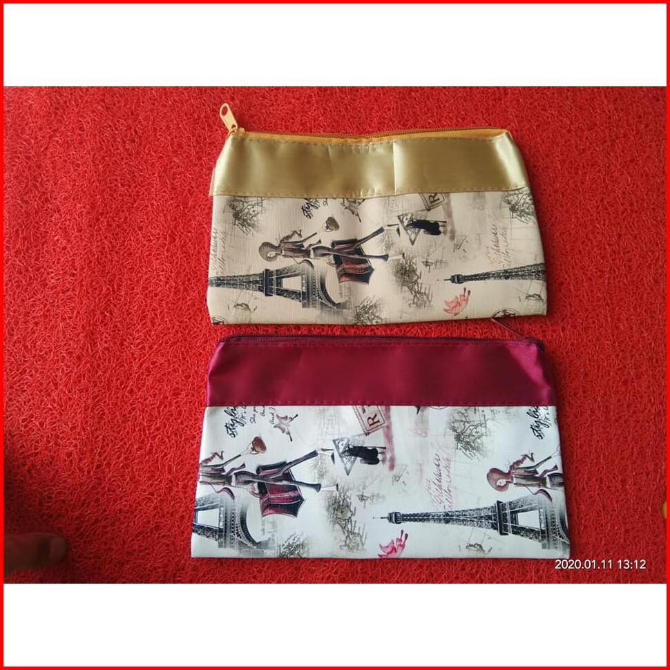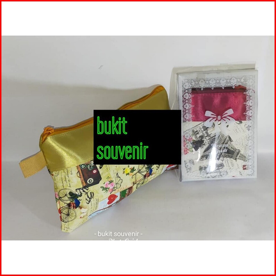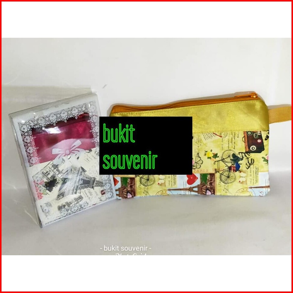 Souvenir Pernikahan Dompet Pouch Paris Kemasan Mika Motif Isi 50 Bonus Gratis Kartu Ucapan Terima Kas