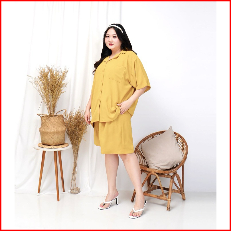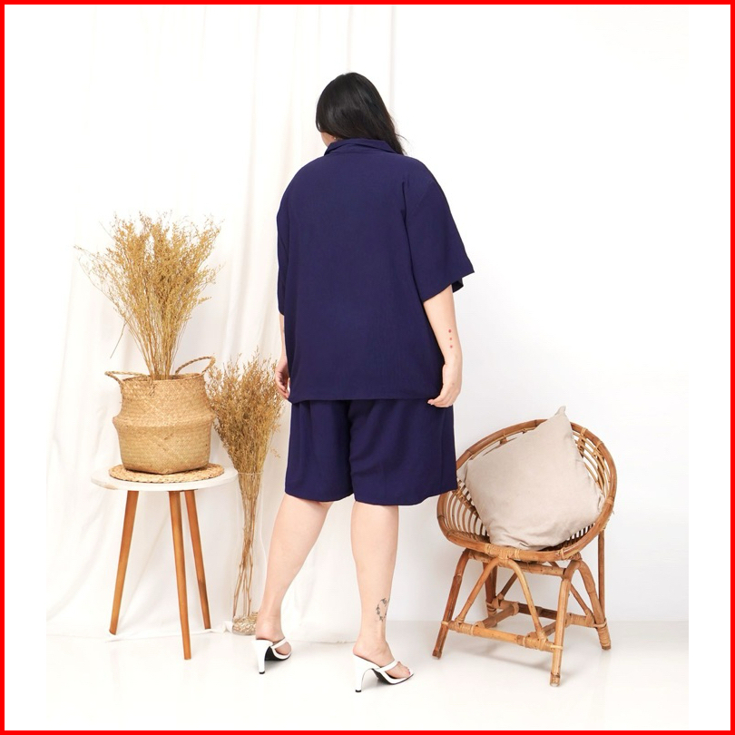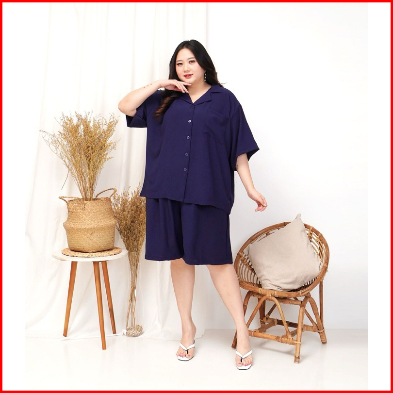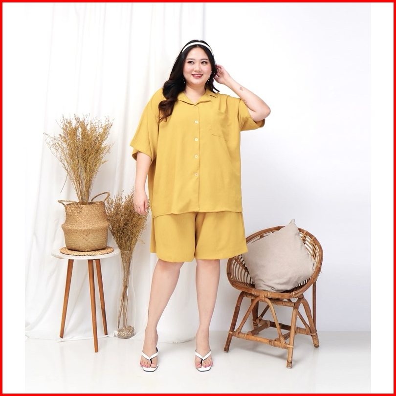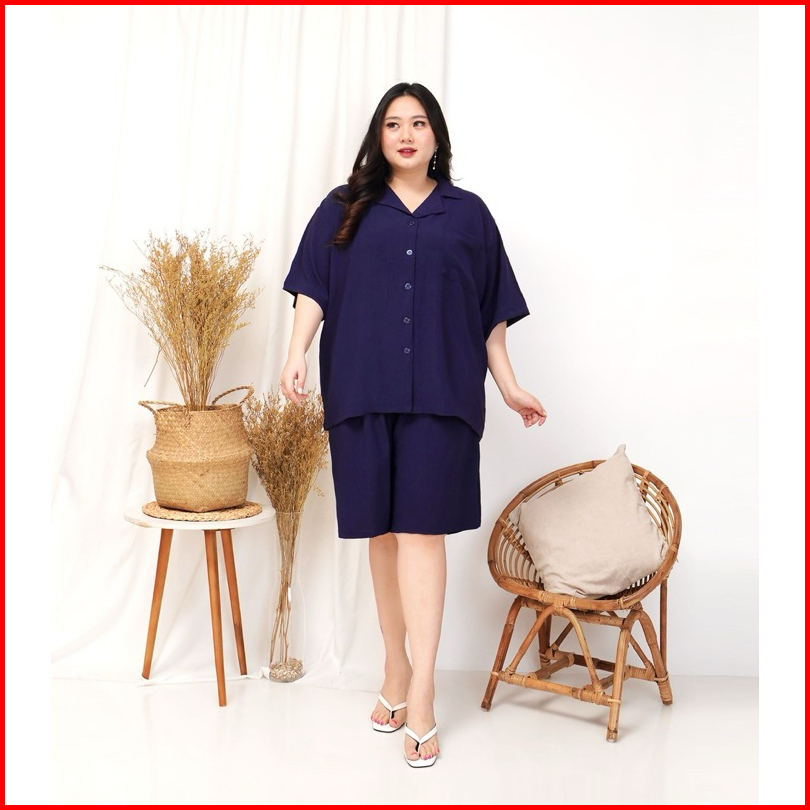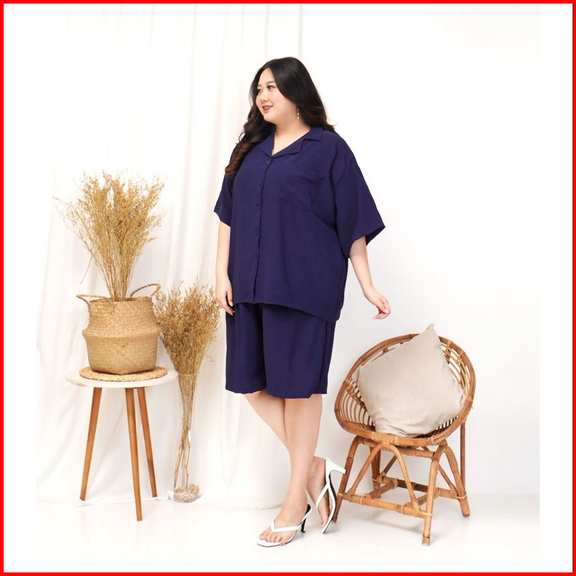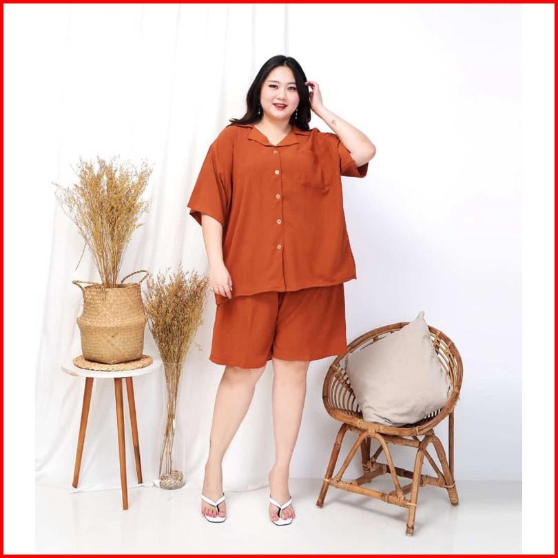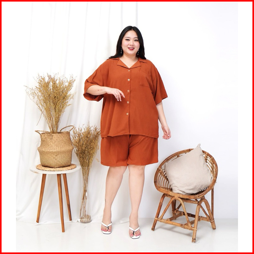 Baju Setelan Jumbo Celana Pendek Ld 140 Cm One Set Crincle Jumbo Kekinian