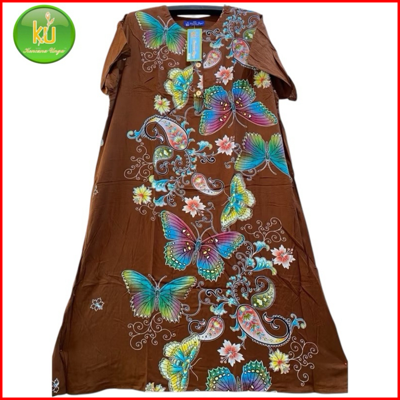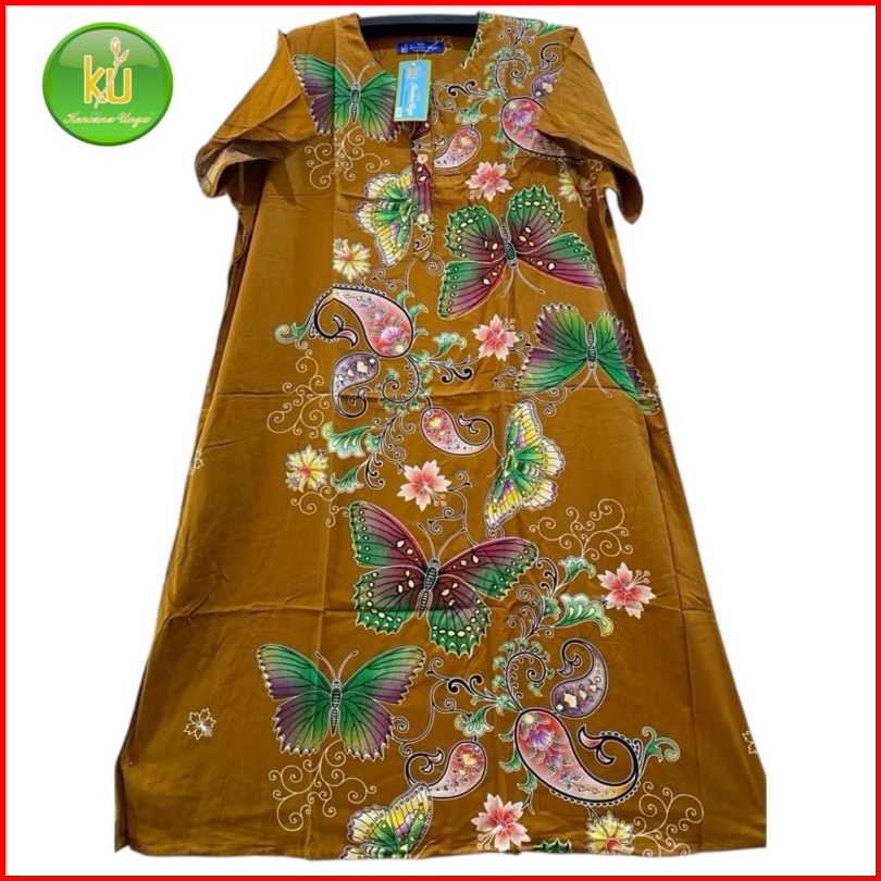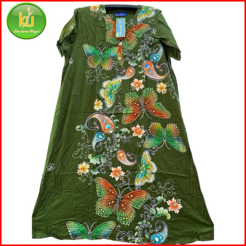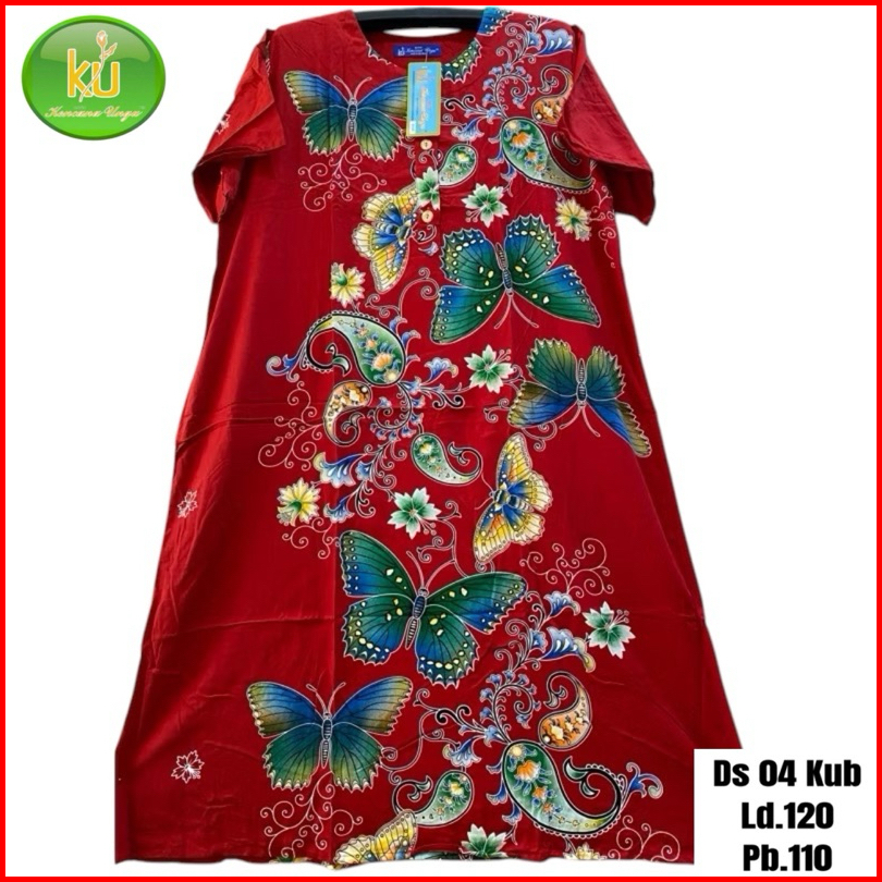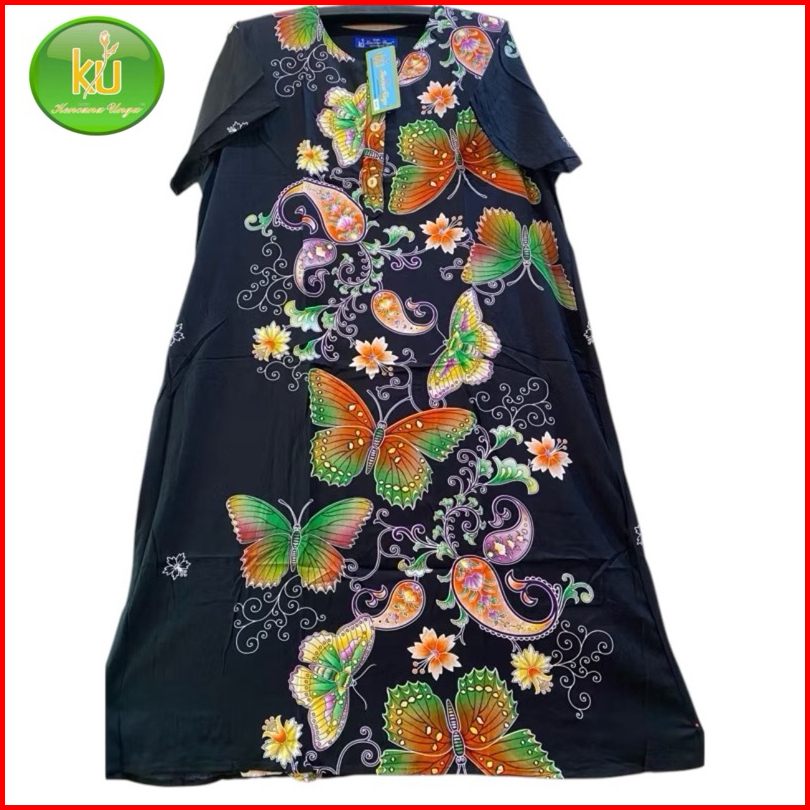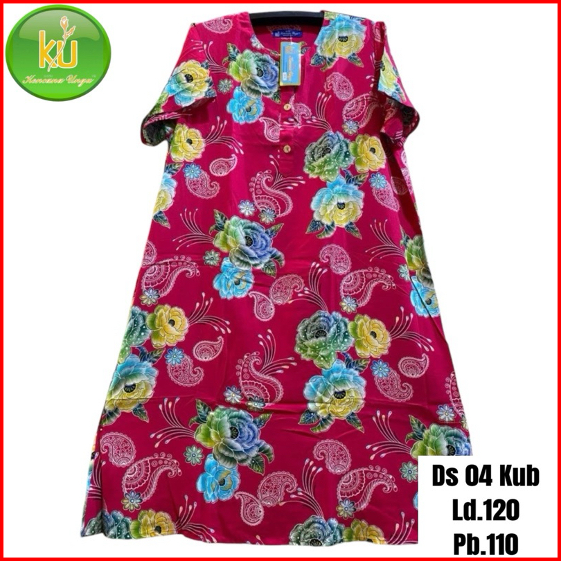 Dress Pendek Asli Kencana Ungu Label Biru Model 04 Daster Lengan Pendek Motif Bunga Terbaru Ukuran Jumbo Ld.120 Cm Baju