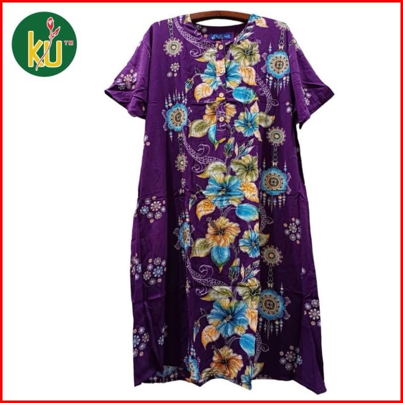 Kencana Ungu L3 Super Label Biru Daster Jumbo Ld.140 Cm Motif Bunga Terbaru Baju Santai Piyama Tidur Super Jumbo Ibu Men