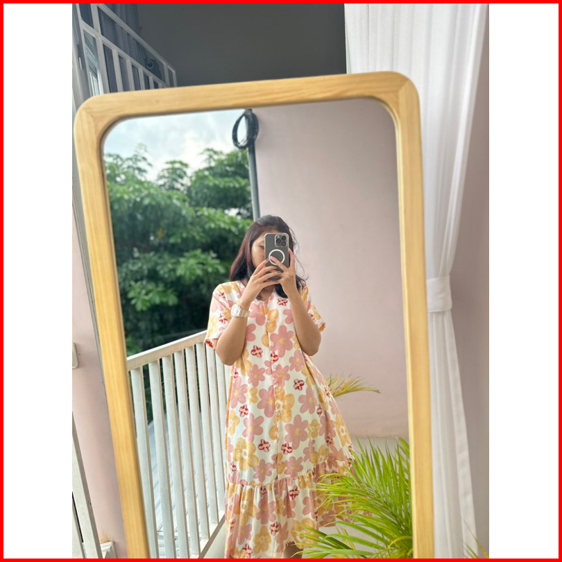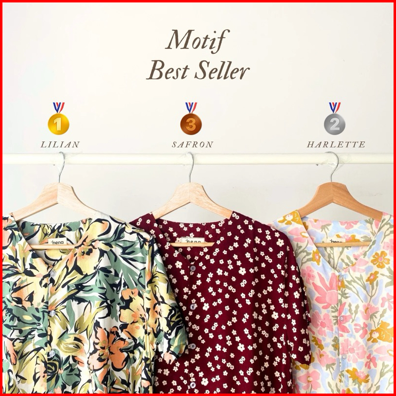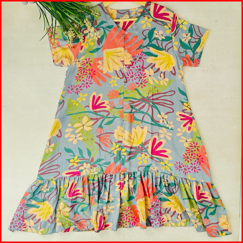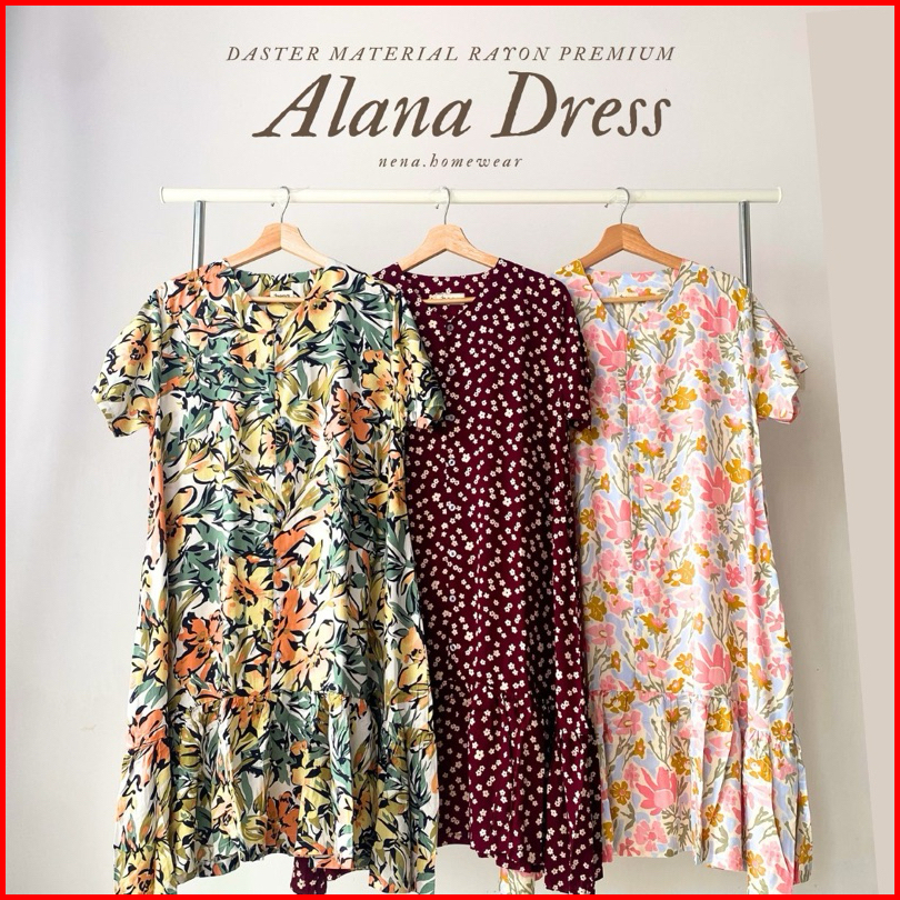 Nena.homewear Alana Dress Daster Piyama Dress Night Gown Bahan Rayon Motif Premium Detail Ruffle Dan Kancing Busui Frien