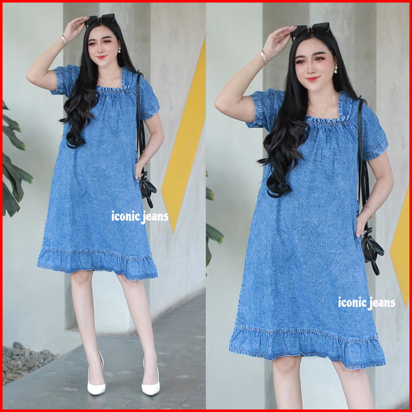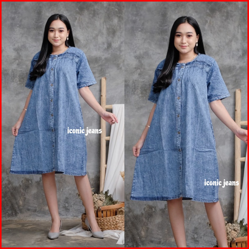 Iconicjeans - Denim Dress Terbaru Daster Jeans Kerut Cantik Busui