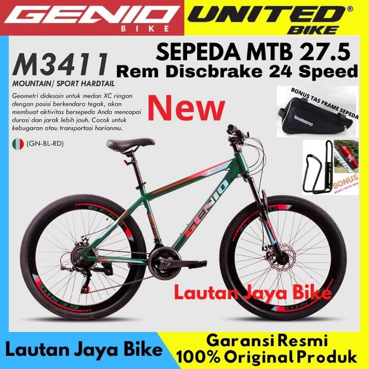 Sepeda Gunung MTB 27.5 GENIO M3411 24 Speed Rem Discbrake Terbaru
