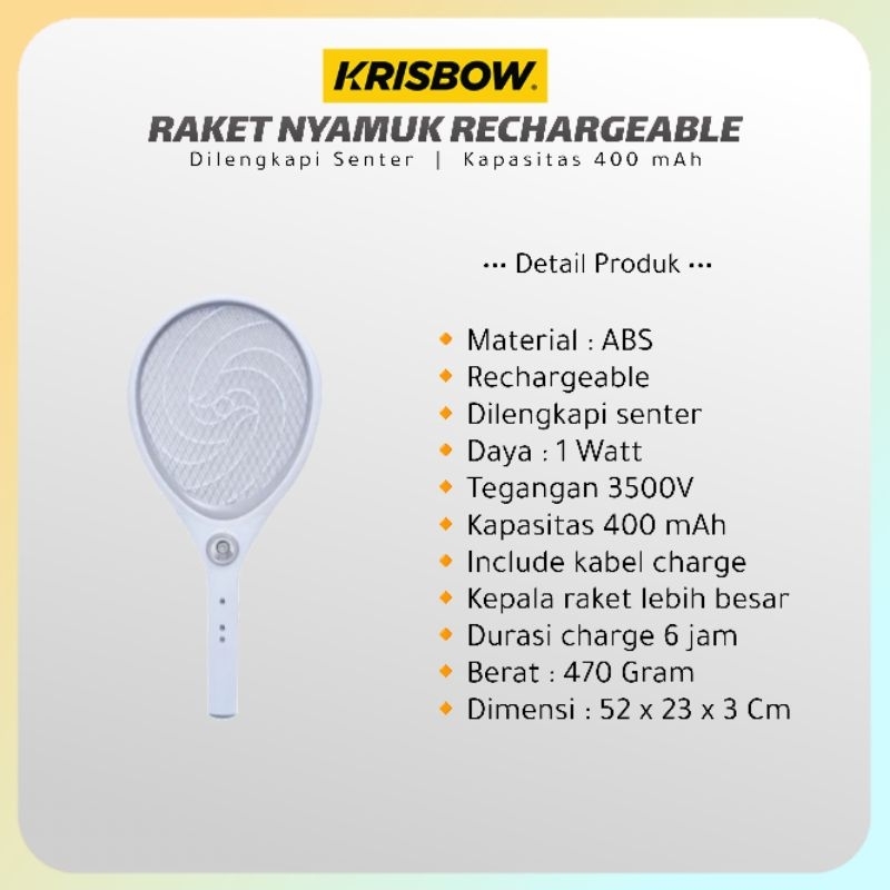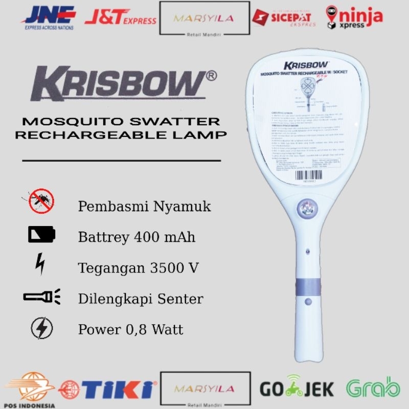 Krisbow Raket Nyamuk Cas Dengan Senter | Mosquito Killer Swatter With Flashlight Krisbow