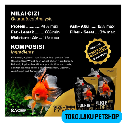 Pakan Pelet Ikan Koki Bulkie Gold Fish Untuk Pembesaran Growth 300gr