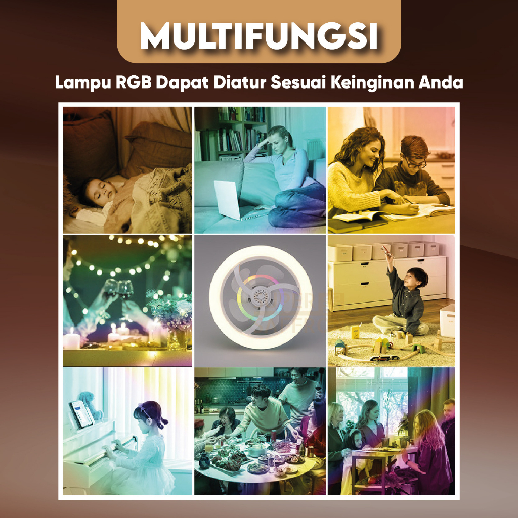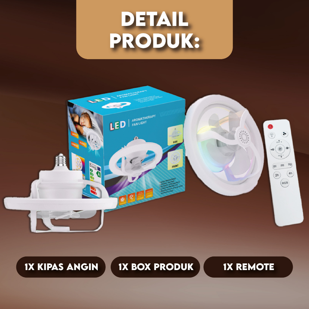 [PROMO] Lampu Kipas Angin LED Gantung Plafon Minimalis 360° Rotation Aromatheraphy RGB 3 Warna Remote